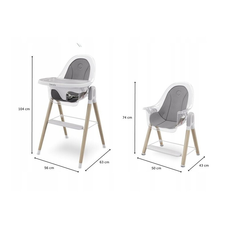- Dimensiunile produsului: scaun inalt: 56 x 63 x 104 cm, scaun jos: 50 x 43 x 74 cm