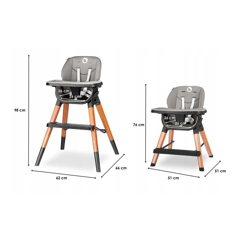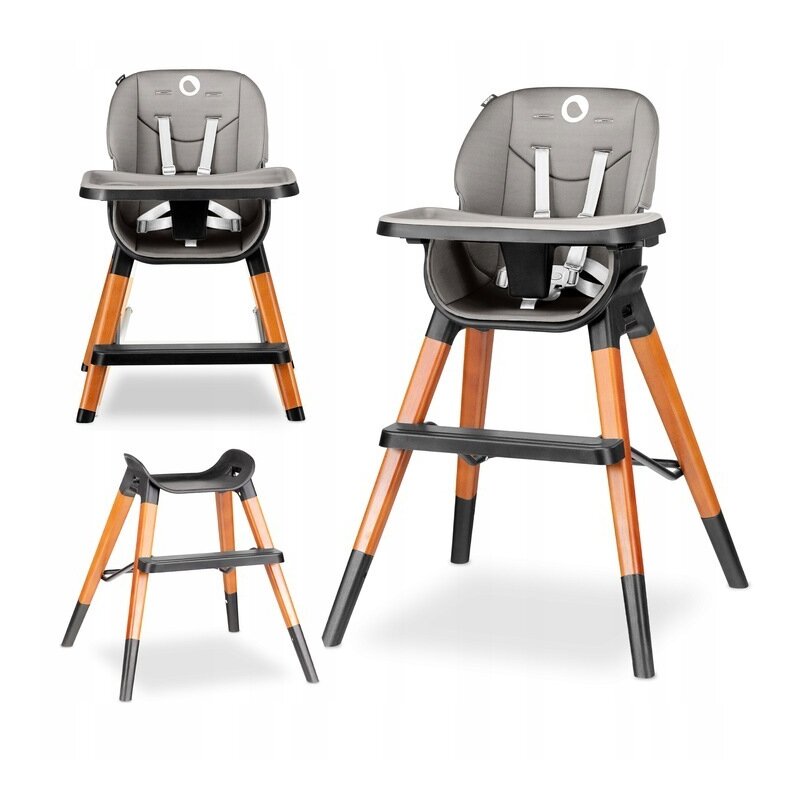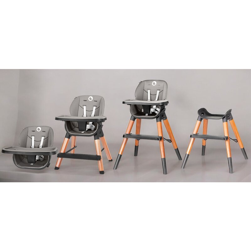 Datorita designului sau modular, Mona 4 in 1 nu functioneaza doar ca un scaun de masa. Produsul poate fi transformat intr-o versiune redusa a unei piese de mobilier, precum si un scaun turistic si un scaun de bar cu o capacitate de incarcare de pana la 75 de kilograme. Modificarile rapide si usoare ale functionalitatii produsului sunt asistate de picioarele detasabile cu „clic”, care va permit sa reglati inaltimea scaunului la nevoile actuale ale copilului.