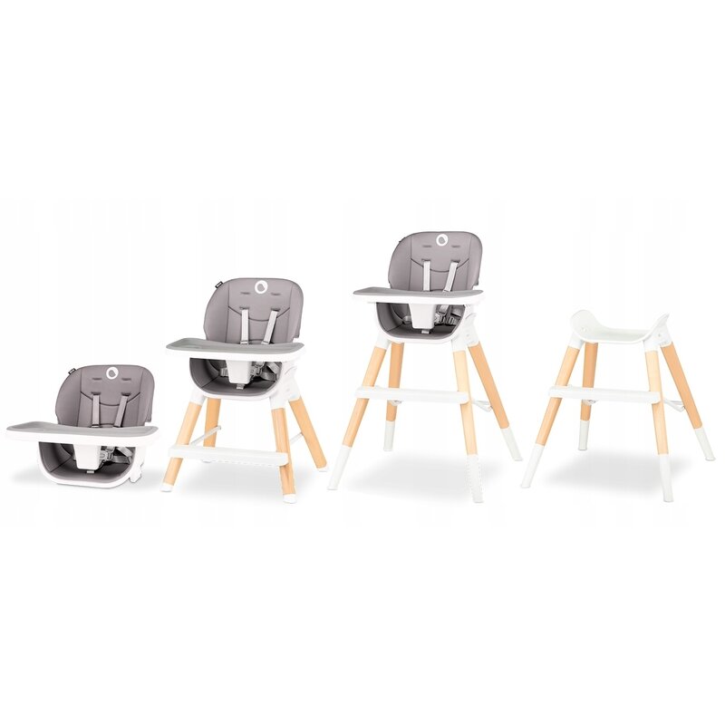 Datorita designului sau modular, Mona 4 in 1 nu functioneaza doar ca un scaun de masa. Produsul poate fi transformat intr-o versiune redusa a unei piese de mobilier, precum si un scaun turistic si un scaun de bar cu o capacitate de incarcare de pana la 75 de kilograme. Modificarile rapide si usoare ale functionalitatii produsului sunt asistate de picioarele detasabile cu „clic”, care va permit sa reglati inaltimea scaunului la nevoile actuale ale copilului.