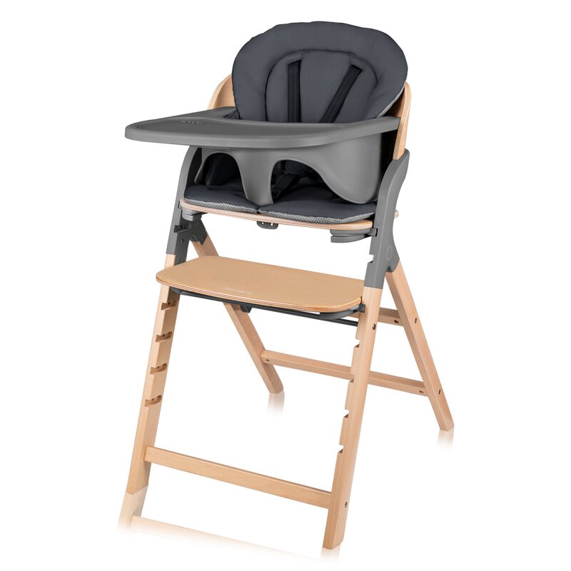 Scaun de masa multifunctional Megan, Lionelo, Din lemn de fag, 6 luni- adult, Reglabil pe inaltime, Husa impermeabila, Tavita silicon, Suport de picioare reglabil, Greutate maxima 110 Kg, Gri