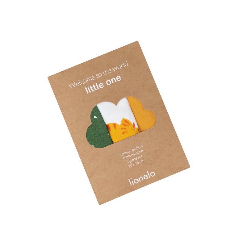 Set 3 museline, Lionelo, Bamboo, Multifunctionale, Din Bambus, 70x70 cm, Dino