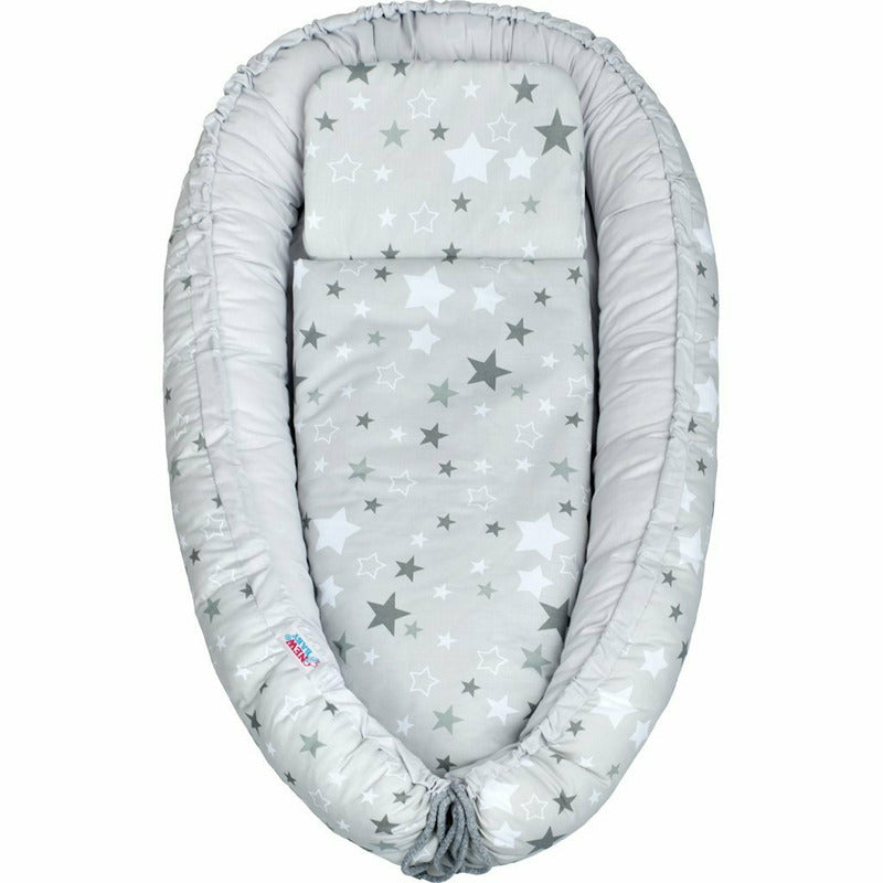 ❤️Set 3 piese New Baby, Baby Nest cu paturica si pernuta ⭐ White/Grey Stars❤️