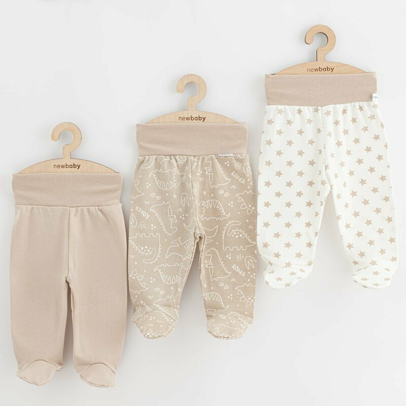 Set 3 piese, New Baby, Classic II, Include 3 perechi de pantalonasi cu botosei, Marime 62, Din bumbac 100%, Beige