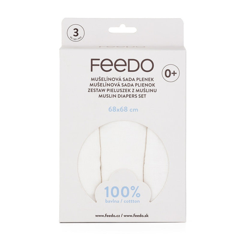 ❤️Set 3 Scutece din muselina Feedo – 100% bumbac certificat Oeko-Tex, 68x68 cm, Alb❤️