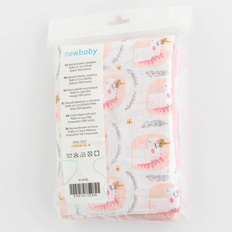 Set 3 scutece, New Baby, Multifunctionale, Din bumbac 100%, Material certificate Oeko Tex Standard 100, 70x80 cm, Multicolor, Girl