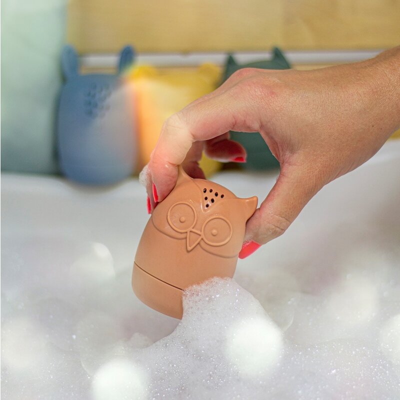 - Setul de jucarii AMIGOS este format din 4 figurine de animale: o bufnita, un iepure de camp, o pisica si un panda. Vor deveni prietenii de nedespartit ai copilului tau. Indiferent ca te afli in baie de acasa, la piscina sau langa apa in vacanta, le poti lua cu tine pentru ca sunt mici si la indemana. Fiecare dintre jucarii are gauri prin care se poate turna apa. Acest lucru va asigura o mare distractie, precum si un exercitiu eficient de strangere cu mainile mici ale copilului. Jucariile trezesc interesul copiilor, le concentreaza atentia si ii invata sa gandeasca creativ. Ele pot fi desurubate in doua parti (superioara si inferioara), facandu-le usor de spalat si uscat.