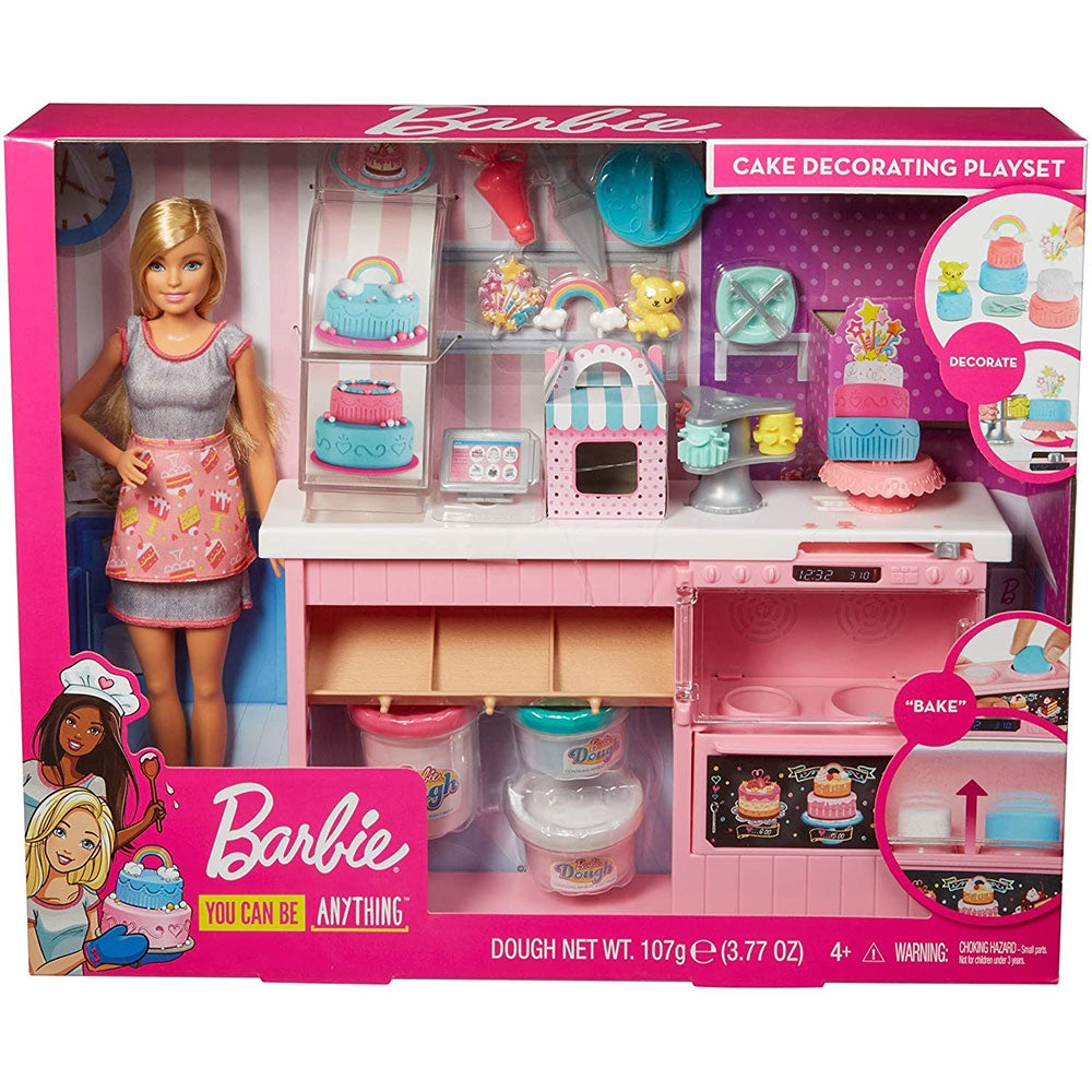 - Papusa Barbie cu acest set de joaca este gata sa ii ajute pe copii sa pregateasca tortul si sa-l decoreze