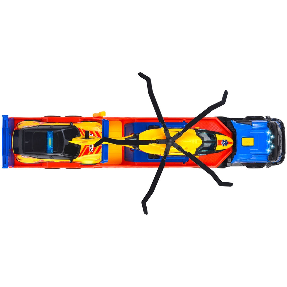 Set Dickie Toys Rescue Transporter 40 cm cu camion, masina, elicopter si accesorii
