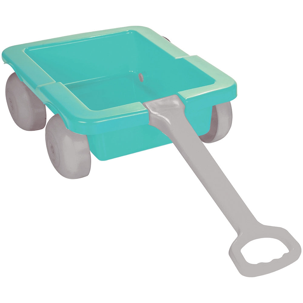 - Pe langa carucior, care poate transporta mult nisip dar si multe jucarii, copilul Dvs. se va bucura si de galeata care contine lopata, grebla si doua forma pentru nisip
