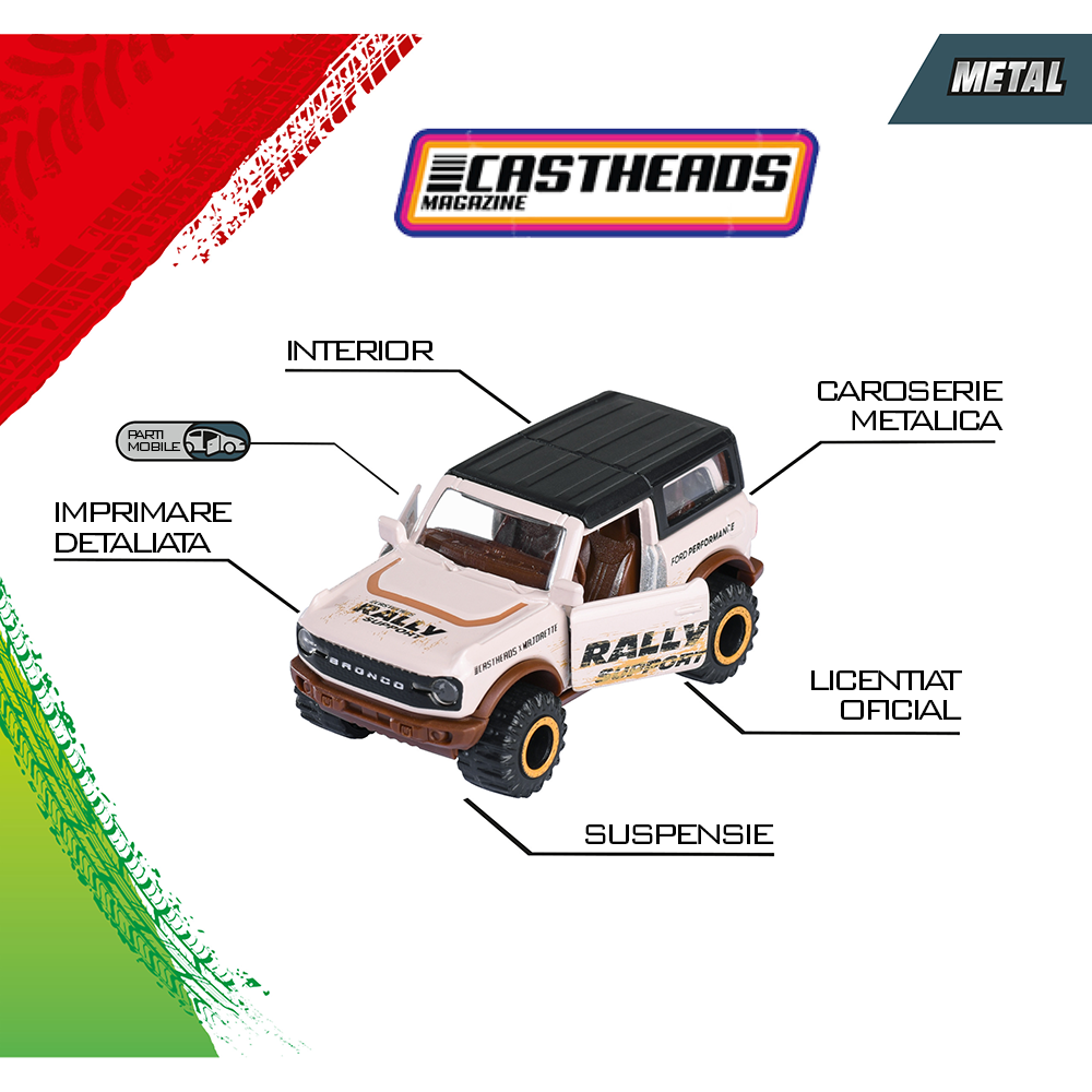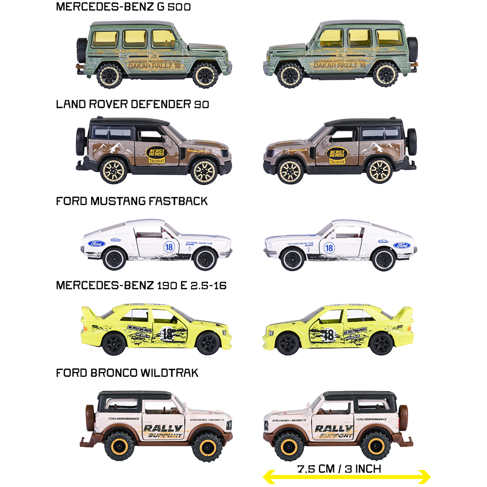 - Setul include: Mercedes-Benz G 500, Land Rover Defender 90, Ford Mustang Fastback, Mercedes-Benz 190 E 2.5-16, Ford Bronco Wildtrak