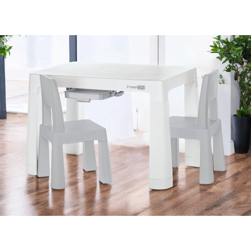 Masa de joaca FreeON cu doua scaune este alegerea perfecta pentru a transforma orice incapere intr-un spatiu dedicat distractiei si invatarii. Cu un design modern si functional, aceasta masa poate fi folosita pentru o gama larga de activitati, de la desen si pictura pana la jocuri si mese in familie.