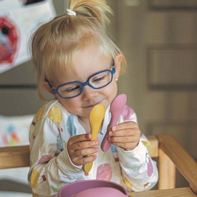 - Setul format dintr-o furculita si o lingura este realizat integral din silicon alimentar fara BPA. Acest lucru ii permite copilului dumneavoastra sa manance atat alimente calde, cat si reci cu tacamurile. Siliconul flexibil face tacamurile ideale pentru gingiile sensibile ale unui copil mic. Tacamurile sunt potrivite pentru bebelusii de la varsta de 6 luni care sunt introdusi intr-o dieta extinsa si cei care deja invata sa manance cu succes singuri. Formele rotunjite si dimensiunile mici le fac mai usor de luat si de mancat pentru cel mic.