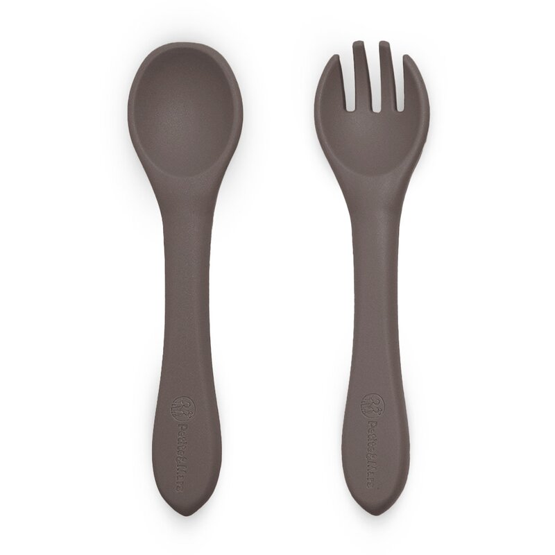 Set tacamuri, Petite&Mars, Take&Match, Din silicon, Forma ergonomica, Delicate cu gingiile, Adecvate pentru masina de spalat vase, Fara BPA, 6 luni+, Bitter Cocoa, Maro