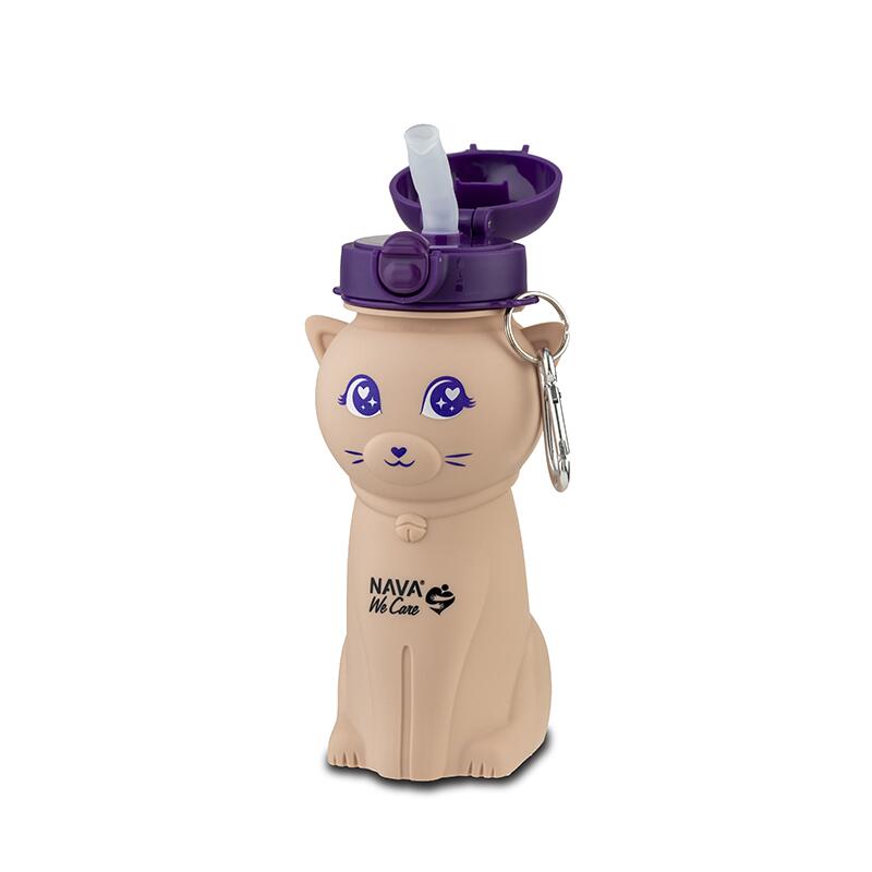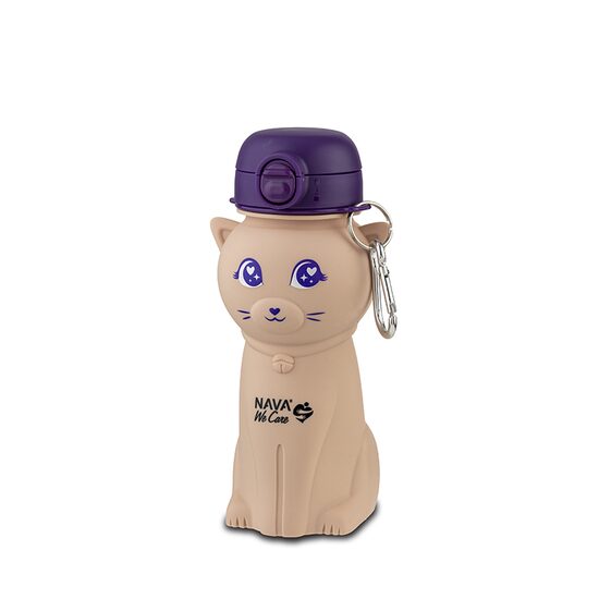Sticla de apa din silicon, Nava We care, 500 ml, pisica