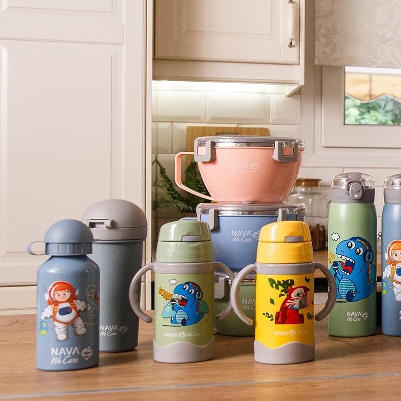 Sticla pentru lichide fierbinti din oțel inoxidabil Nava 300ml „We Care” va încânta atât tinerii cât și bătrânii. Este realizat din oțel inoxidabil 18/8 (ss304) și cu pereți dubli, fără BPA, PVC și ftalați, pentru durabilitate și depozitare absolut sigură și igienă a băuturilor. În această sticlă termos cu tehnologie de izolare în vid, vei păstra băuturile fierbinți sau reci la temperatura dorită timp de 8 ore*. Cu paie integrată pentru ușurință în utilizare. Capacul se deschide automat (OneTouch) prin apasarea butonului, special conceput pentru mainile mici. Cu două mânere ergonomice pentru o prindere ușoară, este ideală pentru micii noștri prieteni, pentru școală, plimbări și, de asemenea, pentru interiorul casei, deoarece nu se rupe și este complet impermeabil. În ceea ce privește curățarea, spălați manual cu un burete moale după fiecare utilizare. Nu poate fi spălat vase. *Timpul de reținere a temperaturii poate varia în funcție de cantitatea de conținut, de temperatura băuturii sau de temperatura mediului extern.