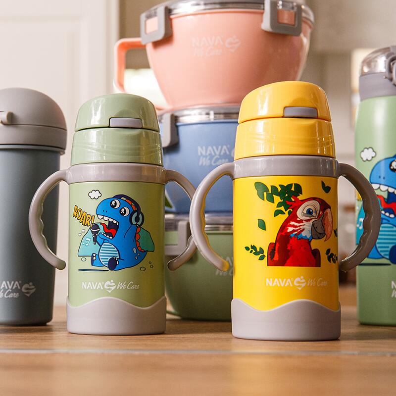 Sticla pentru lichide fierbinti din oțel inoxidabil Nava 300ml „We Care” va încânta atât tinerii cât și bătrânii. Este realizat din oțel inoxidabil 18/8 (ss304) și cu pereți dubli, fără BPA, PVC și ftalați, pentru durabilitate și depozitare absolut sigură și igienă a băuturilor. În această sticlă termos cu tehnologie de izolare în vid, vei păstra băuturile fierbinți sau reci la temperatura dorită timp de 8 ore*. Cu paie integrată pentru ușurință în utilizare. Capacul se deschide automat (OneTouch) prin apasarea butonului, special conceput pentru mainile mici. Cu două mânere ergonomice pentru o prindere ușoară, este ideală pentru micii noștri prieteni, pentru școală, plimbări și, de asemenea, pentru interiorul casei, deoarece nu se rupe și este complet impermeabil. În ceea ce privește curățarea, spălați manual cu un burete moale după fiecare utilizare. Nu poate fi spălat vase. *Timpul de reținere a temperaturii poate varia în funcție de cantitatea de conținut, de temperatura băuturii sau de temperatura mediului extern.