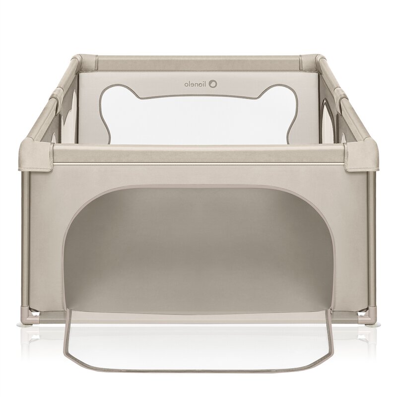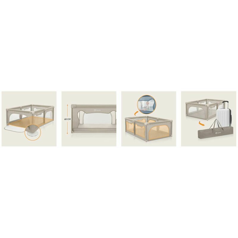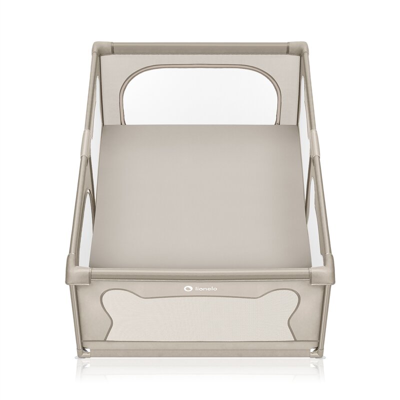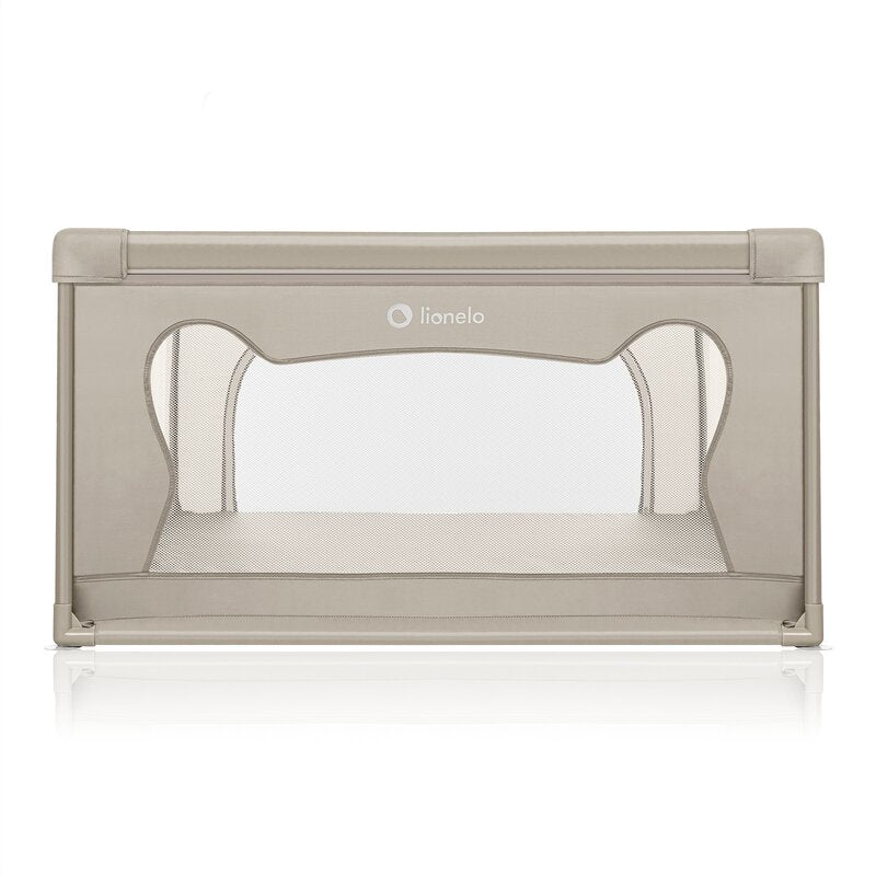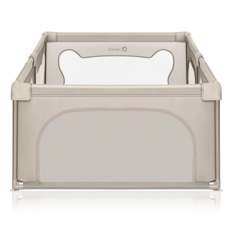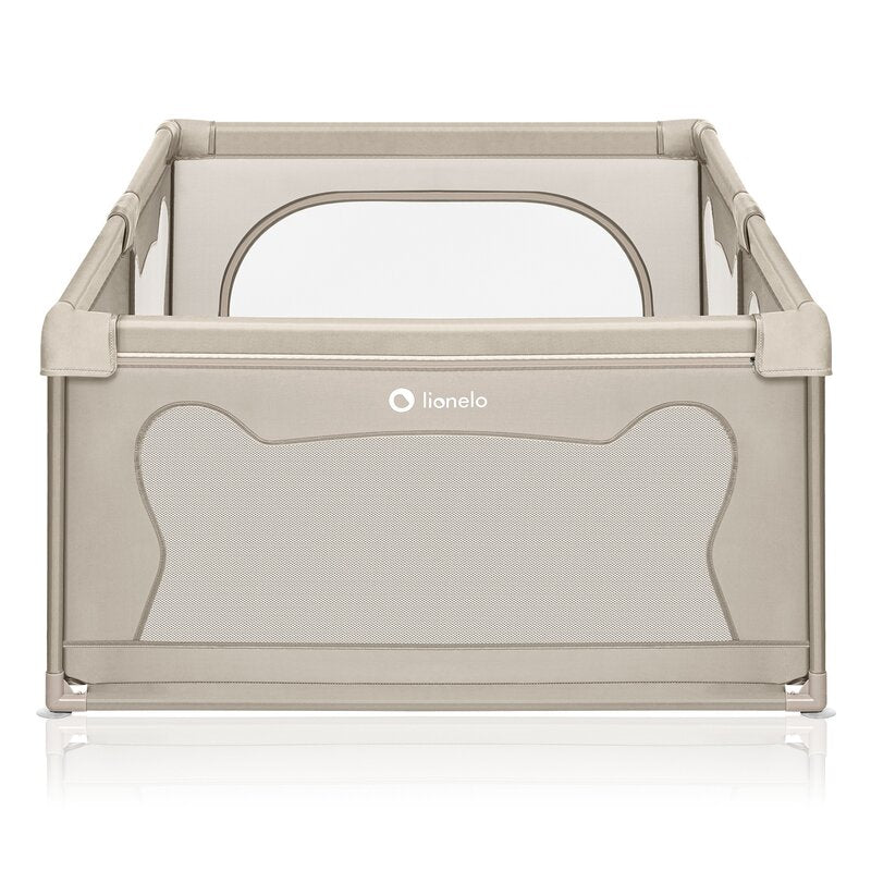 Tarc de joaca copii, Lionelo, Willow, 127 x 187 cm, Pliere compacta, Include geanta de transport, Din plasa, Cu doua intrari laterale si fermoar, Cu ventuze pentru stabilitate, Conform cu EN 12227:2010, Bej