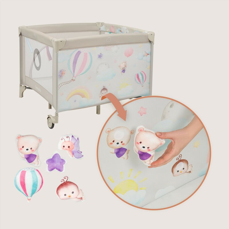 - Set: țarc de joacă, saltea, 4 jucării, geantă de transport;