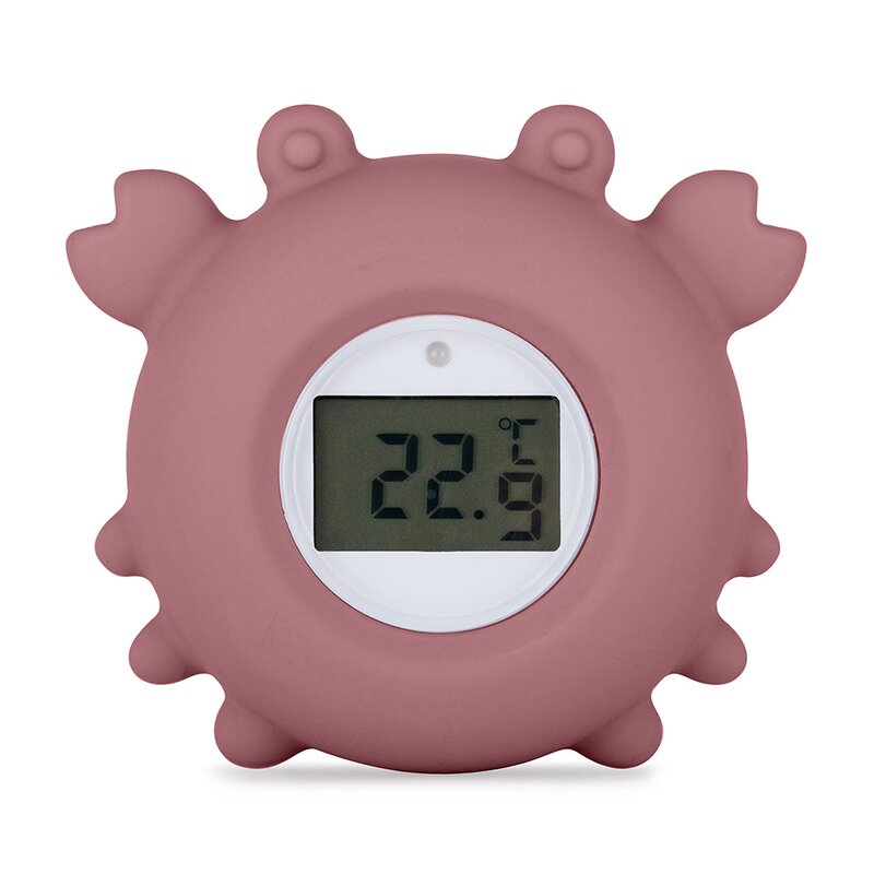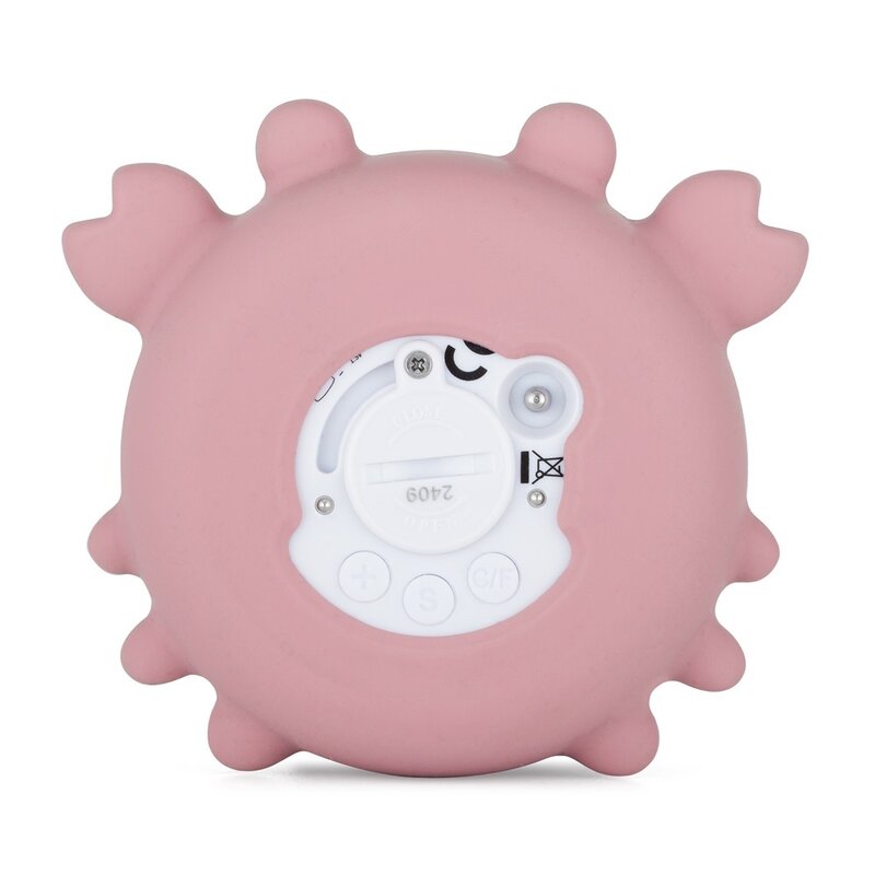 Temometru digital, Petite&Mars, Crabul Caleb, Multifunctional, Ecran usor de citit, Valoare precisa, Silicon Sigur, Avertizare temperatura, 0 luni+, Roz