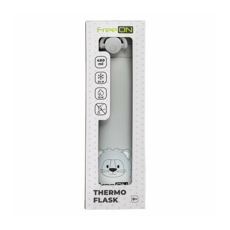 Termos lichide, FreeON, Din otel inoxidabil, Cu mentinere de temperatura de pana la 12 ore, 480 ml, Grey