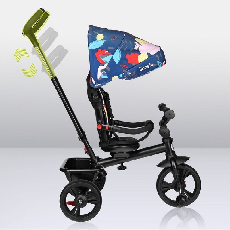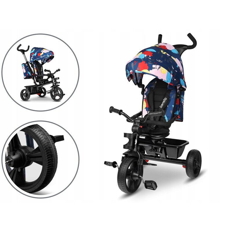 Tricicleta copii, Lionelo, Haari, Ultrapliabila, Multifunctionala, Suport picioare, Control al directiei, Scaun reversibil, Rotire 360 grade, Conform cu standardul european de securitate EN71, Albastru
