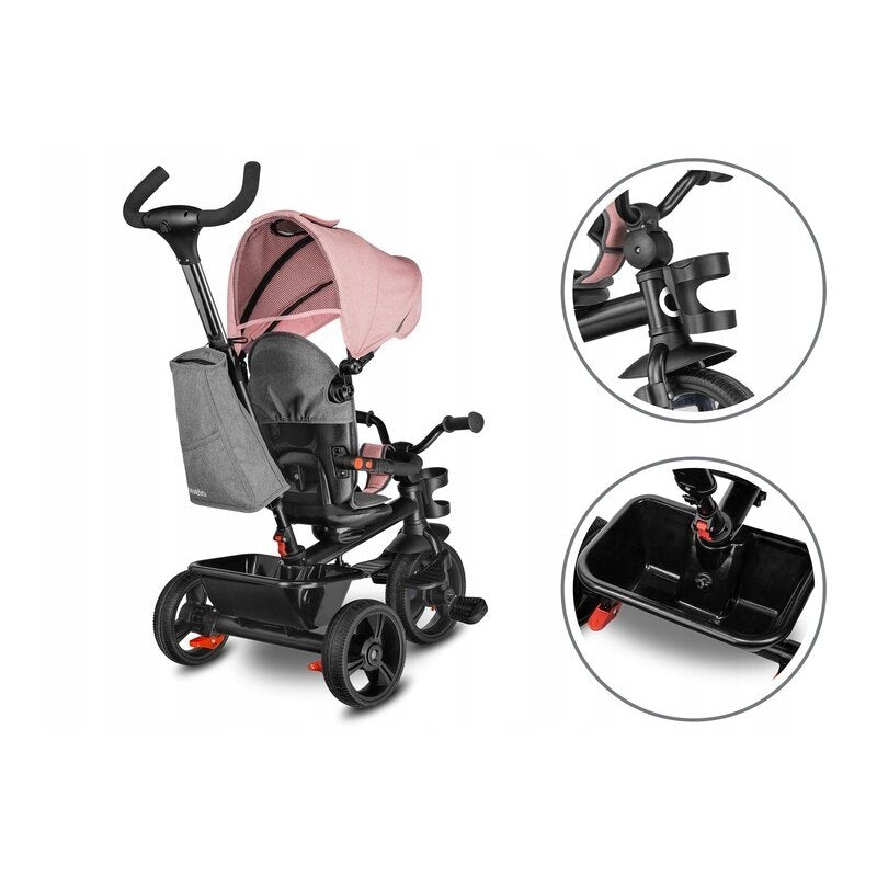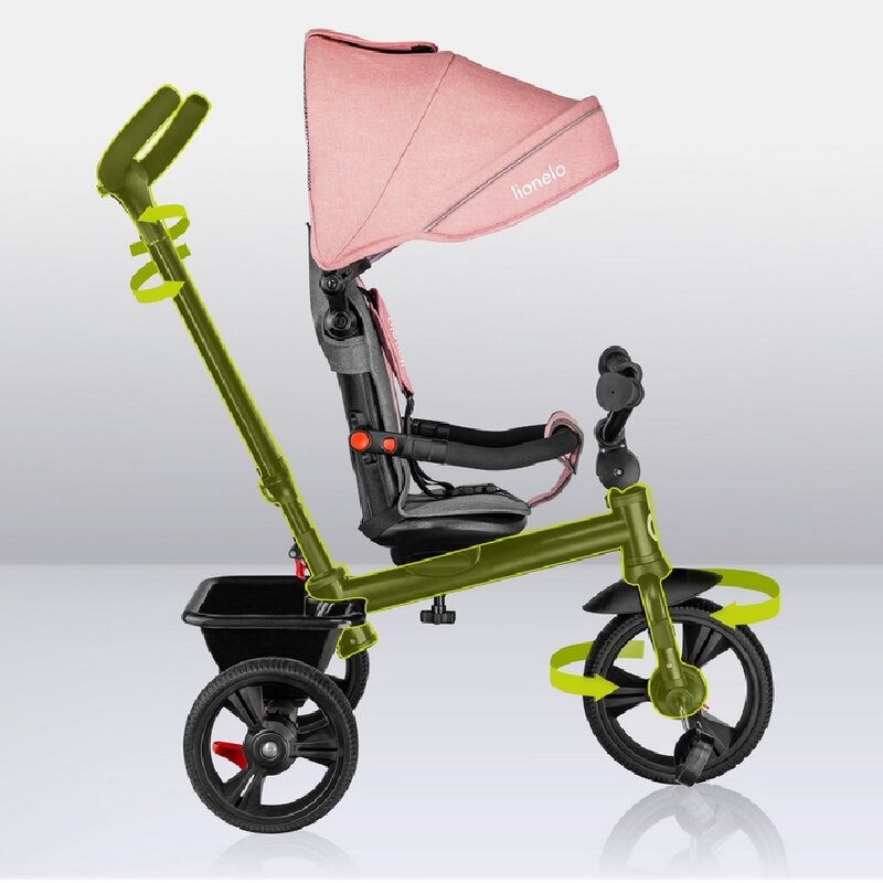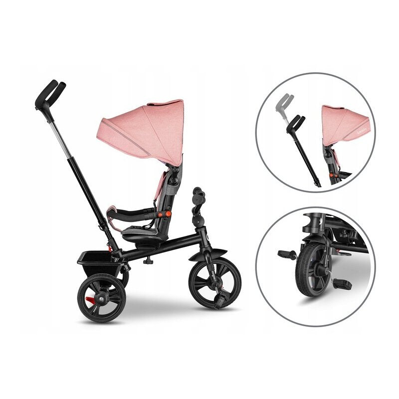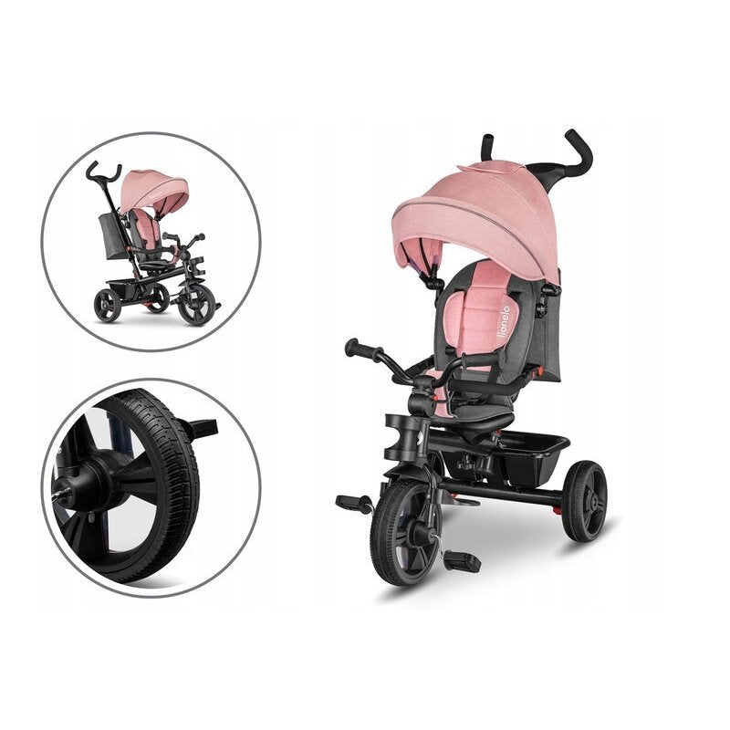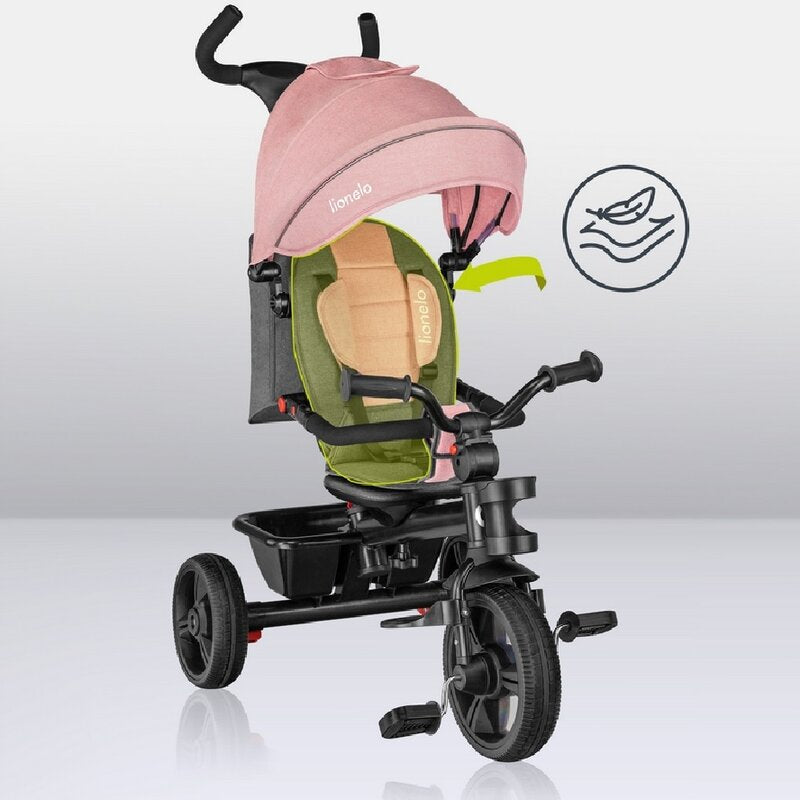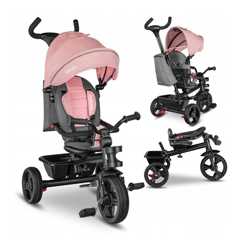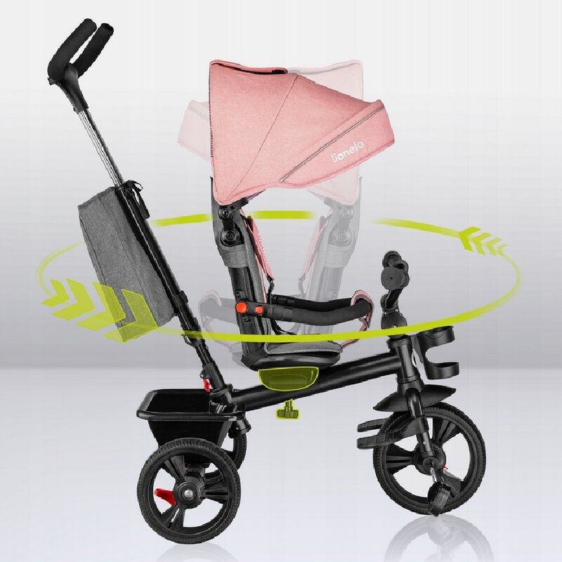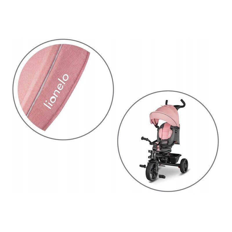 Tricicleta copii, Lionelo, Haari, Ultrapliabila, Multifunctionala, Suport picioare, Control al directiei, Scaun reversibil, Rotire 360 grade, Conform cu standardul european de securitate EN71, Bubblegum