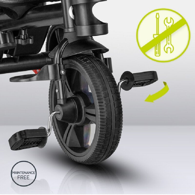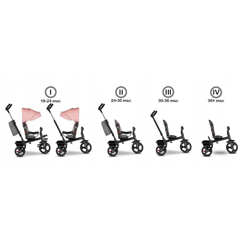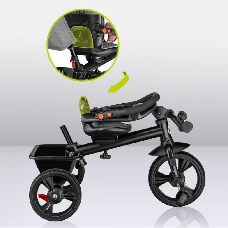 Tricicleta Haari se adapteaza cu usurinta la nevoile si varsta copilului, oferind o experienta placuta atat pentru cei mici, cat si pentru parinti. Scaunul rotativ permite orientarea copilului fie spre inainte, fie spre spate, oferind flexibilitate in utilizare. Initial, poate fi folosita ca un carucior confortabil, iar pe masura ce copilul creste si ajunge la pedale, se transforma intr-o tricicleta complet functionala, incurajand independenta.