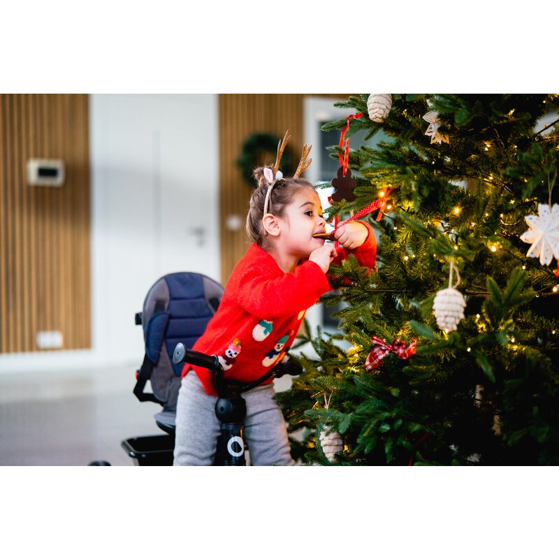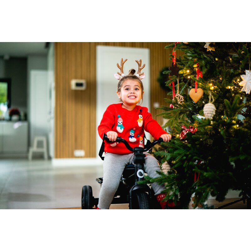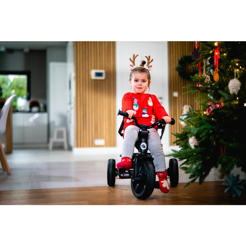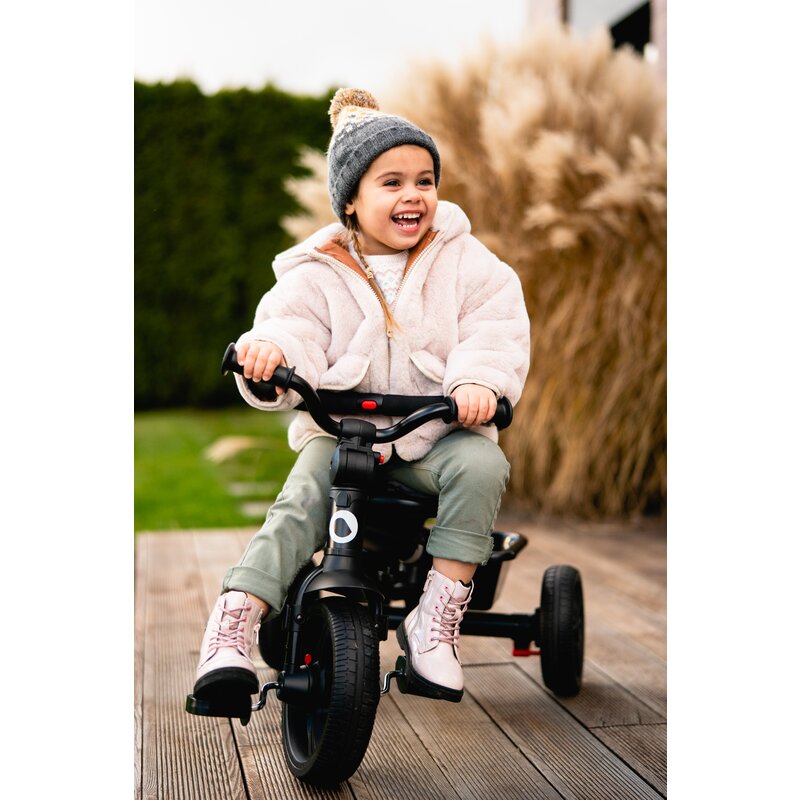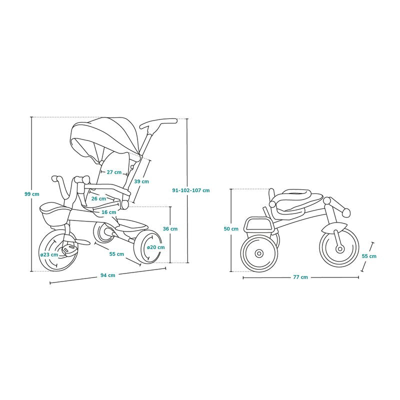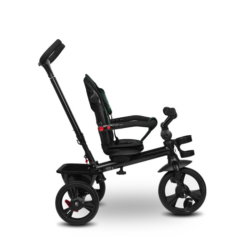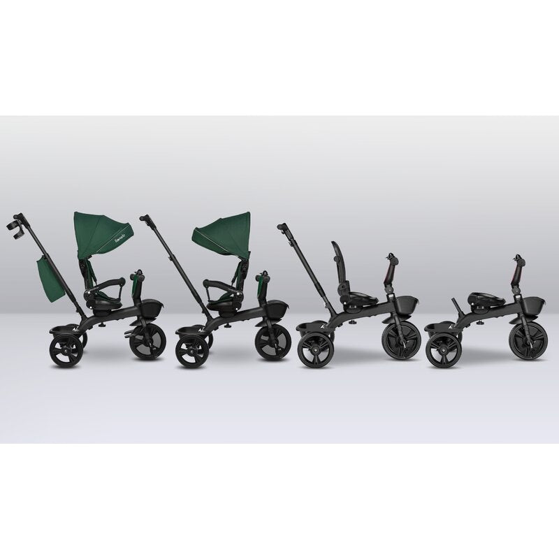 Scaunul rotativ permite orientarea atat cu fata, cat si cu spatele, oferind libertate totala in functie de contextul plimbarii. Tricicleta poate fi folosita in diverse moduri – de la modul de impingere tip carucior, pana la utilizarea clasica, cu pedale.