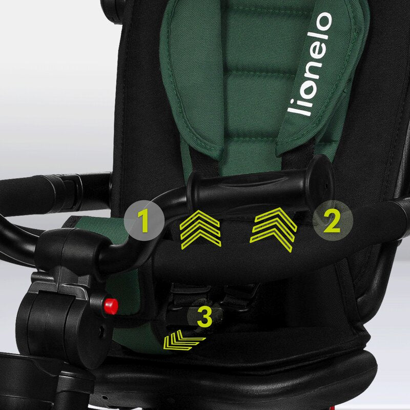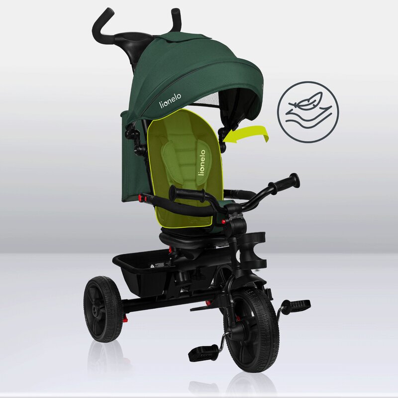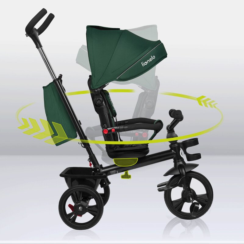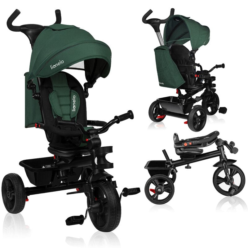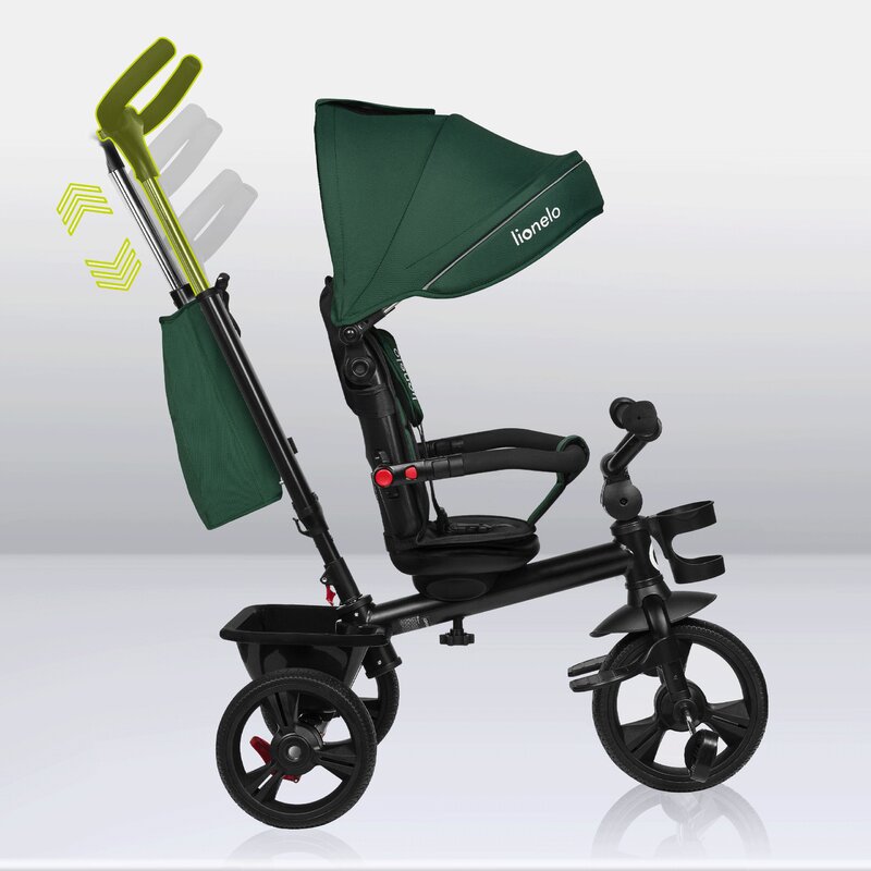 Tricicleta copii, Lionelo, Haari, Ultrapliabila, Multifunctionala, Suport picioare, Control al directiei, Scaun reversibil, Rotire 360 grade, Conform cu standardul european de securitate EN71, Verde