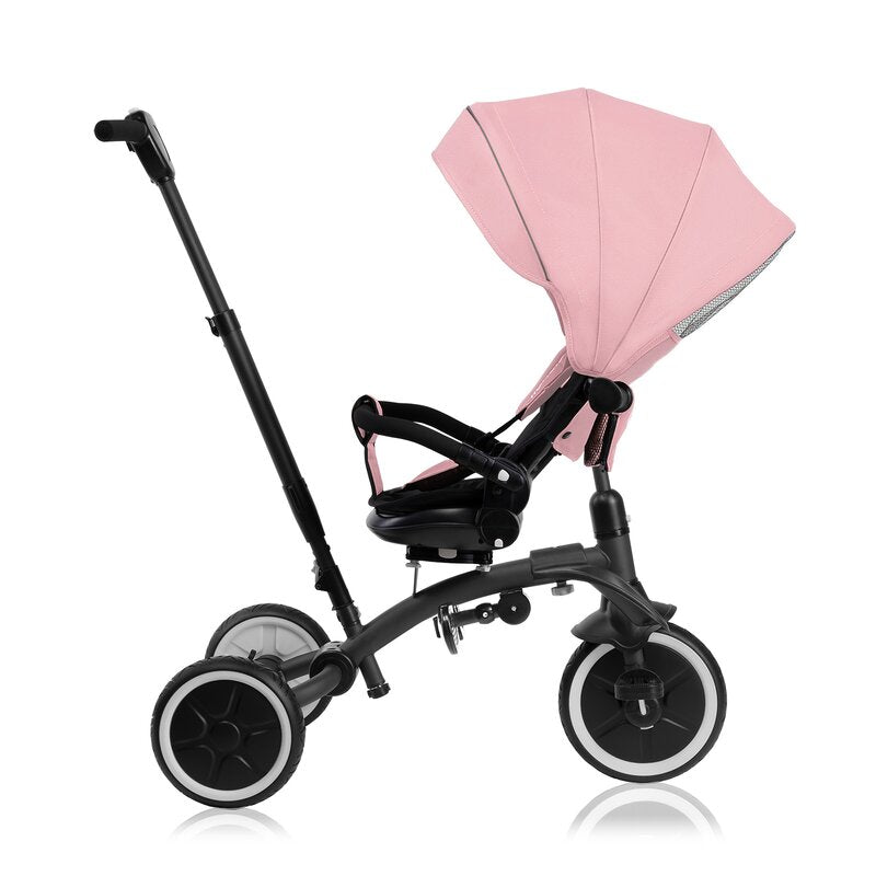 Tricicleta copii, Lionelo, Tris Plus, Ultrapliabila, Multifunctionala, Pana la 25 kg, Inclinare spatar in fata si in spate, Suport picioare, Control al directiei, Scaun reversibil, Rotire 360 grade, Conform cu EN71, 9 luni-5 ani, Roz