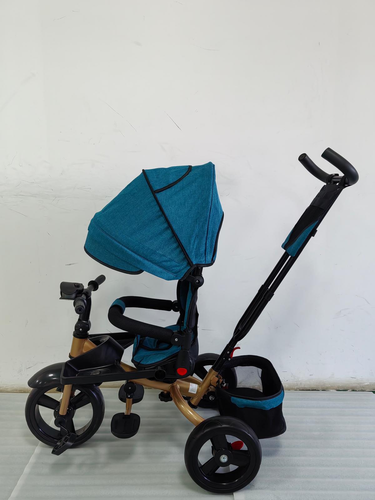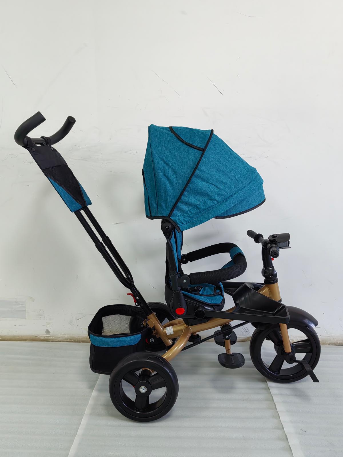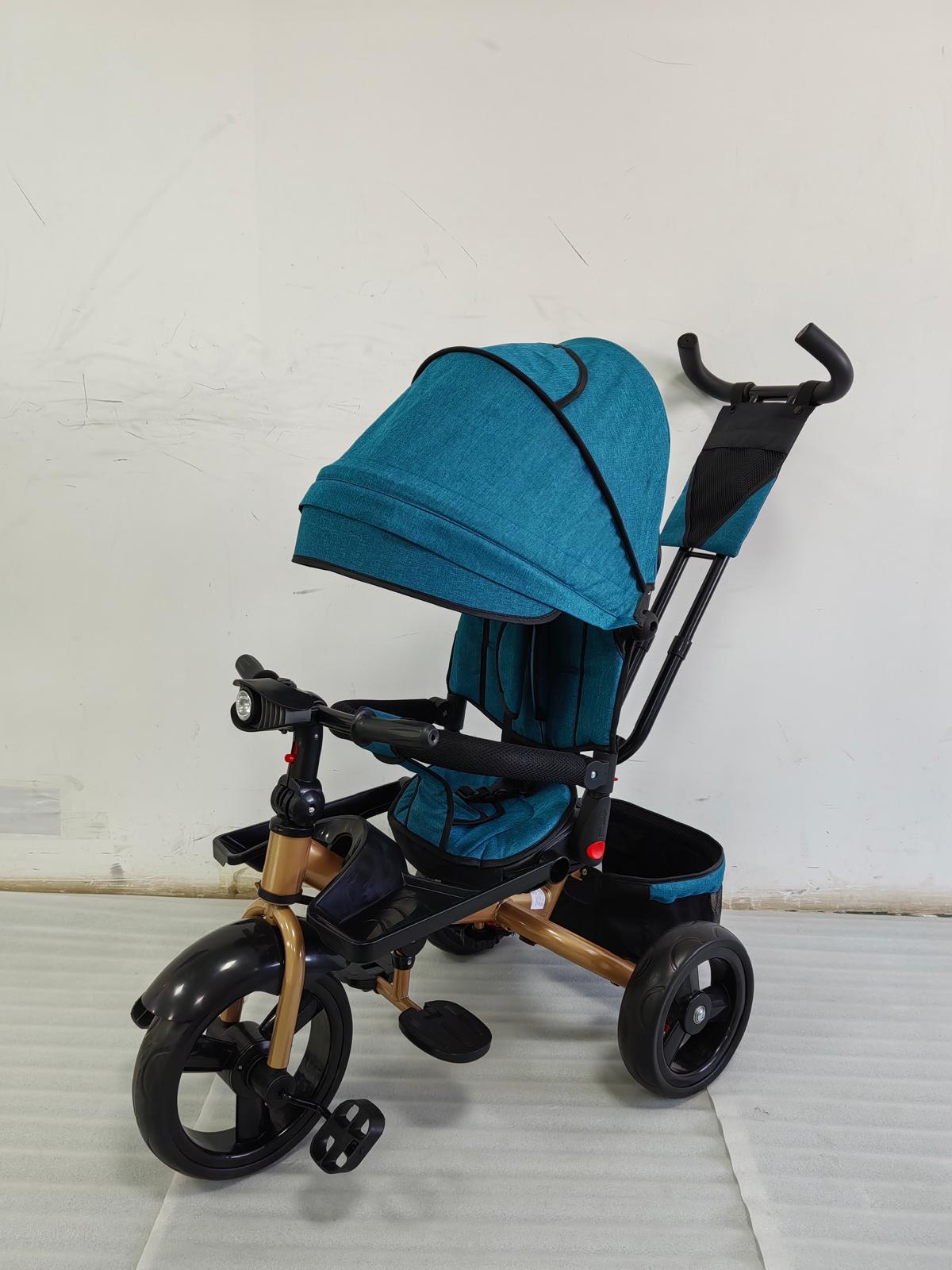 Tricicleta cu pozitie de somn, scaun rotativ si muzica distractiva, Turcoaz 5099NWM