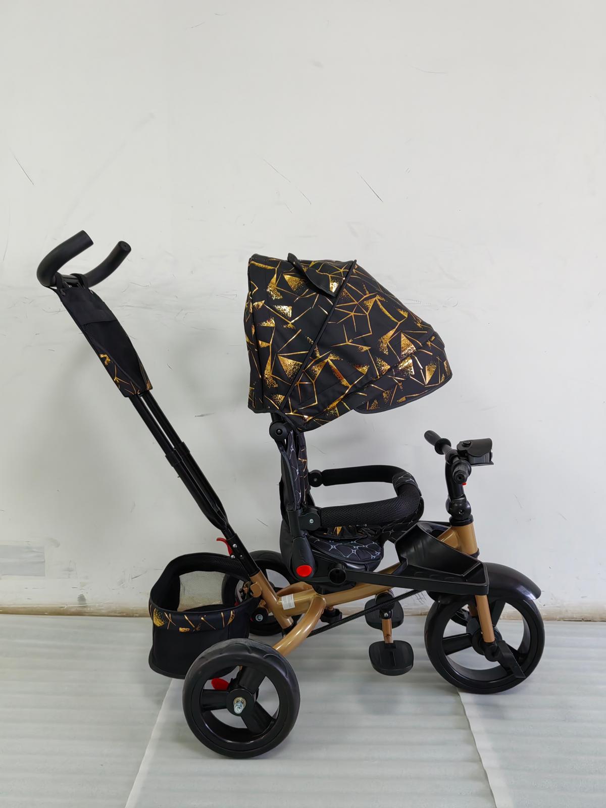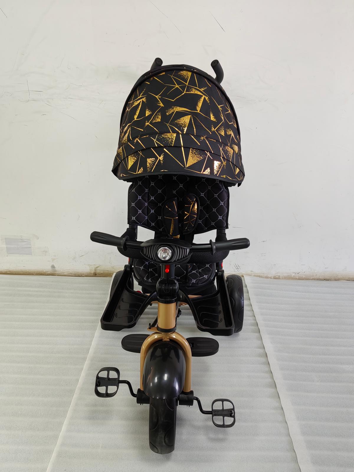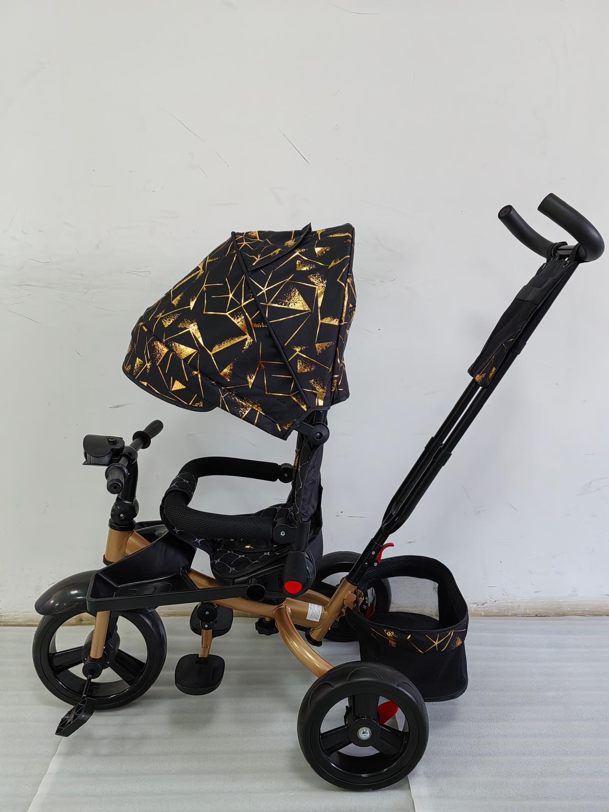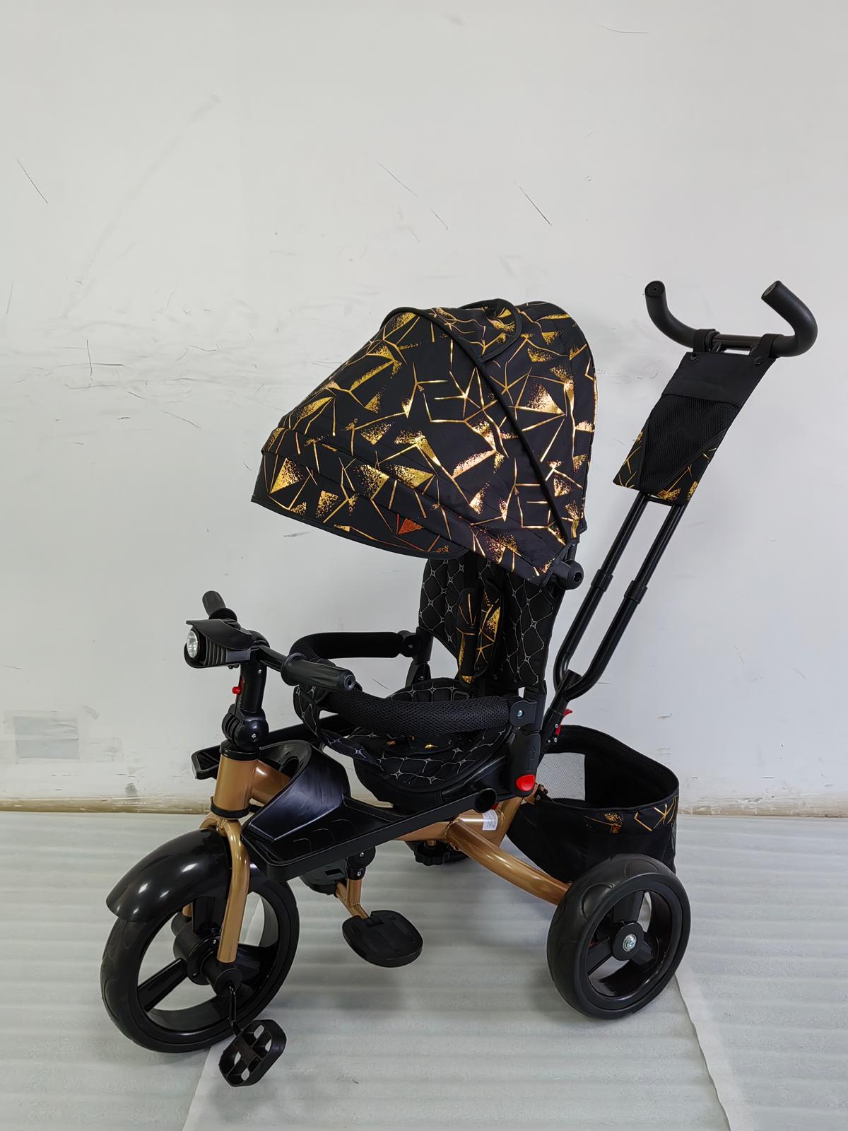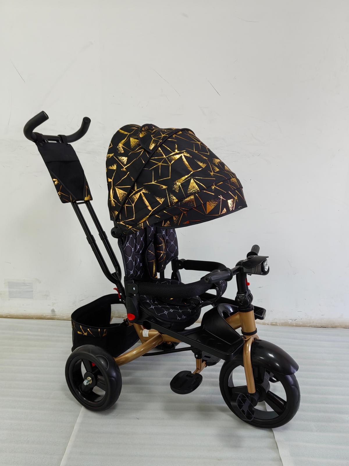 Tricicleta cu pozitie de somn, scaun rotativ si muzica distractiva, Negru Auriu 5099NWNA
