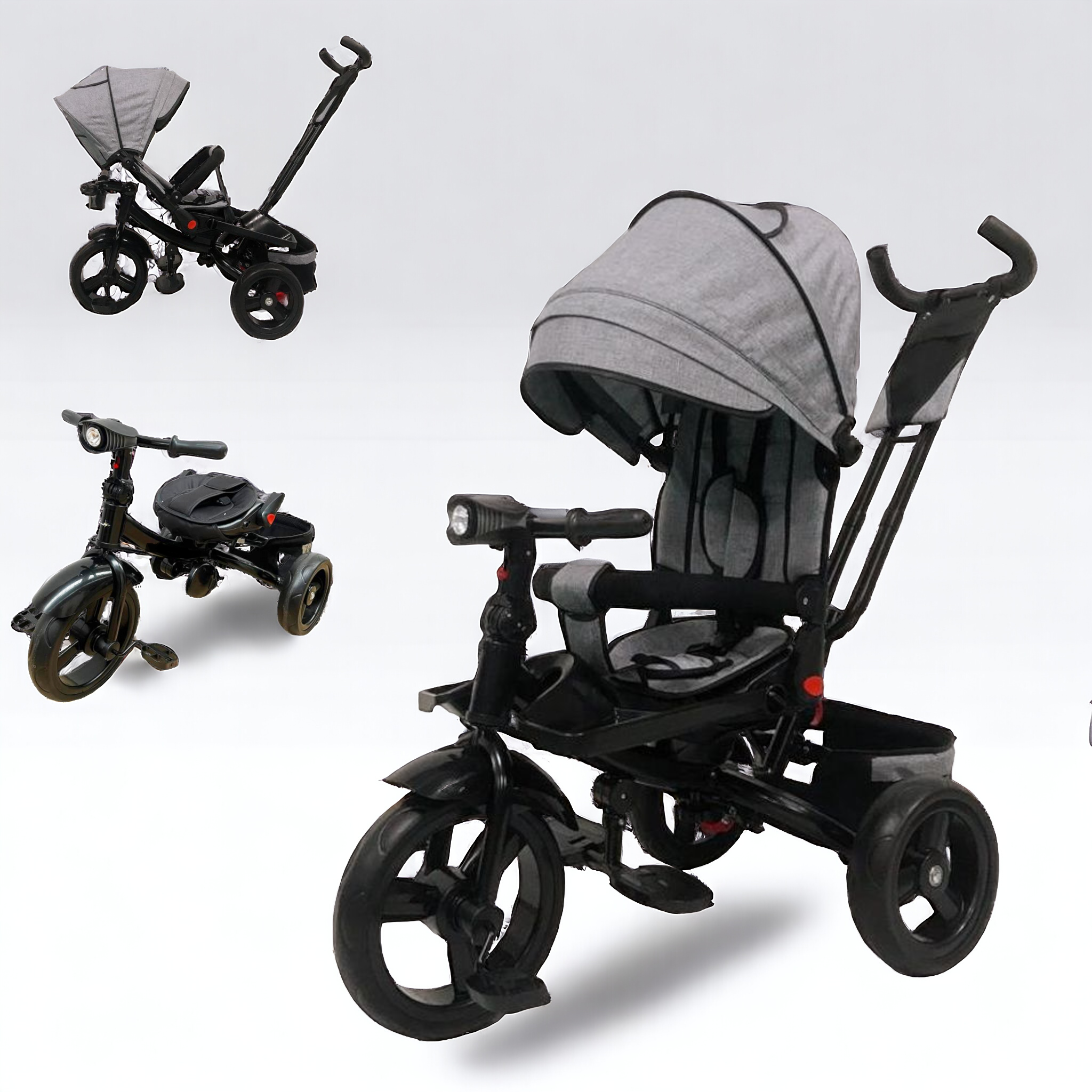 Tricicleta 5099EVA este o tricicleta evolutiva, +8 luni-4 ani, cu scaun rotativ sin pozitie somn, , prevazuta cu ansamblu de muzica si lumini ce ii vor incanta pe cei mici.