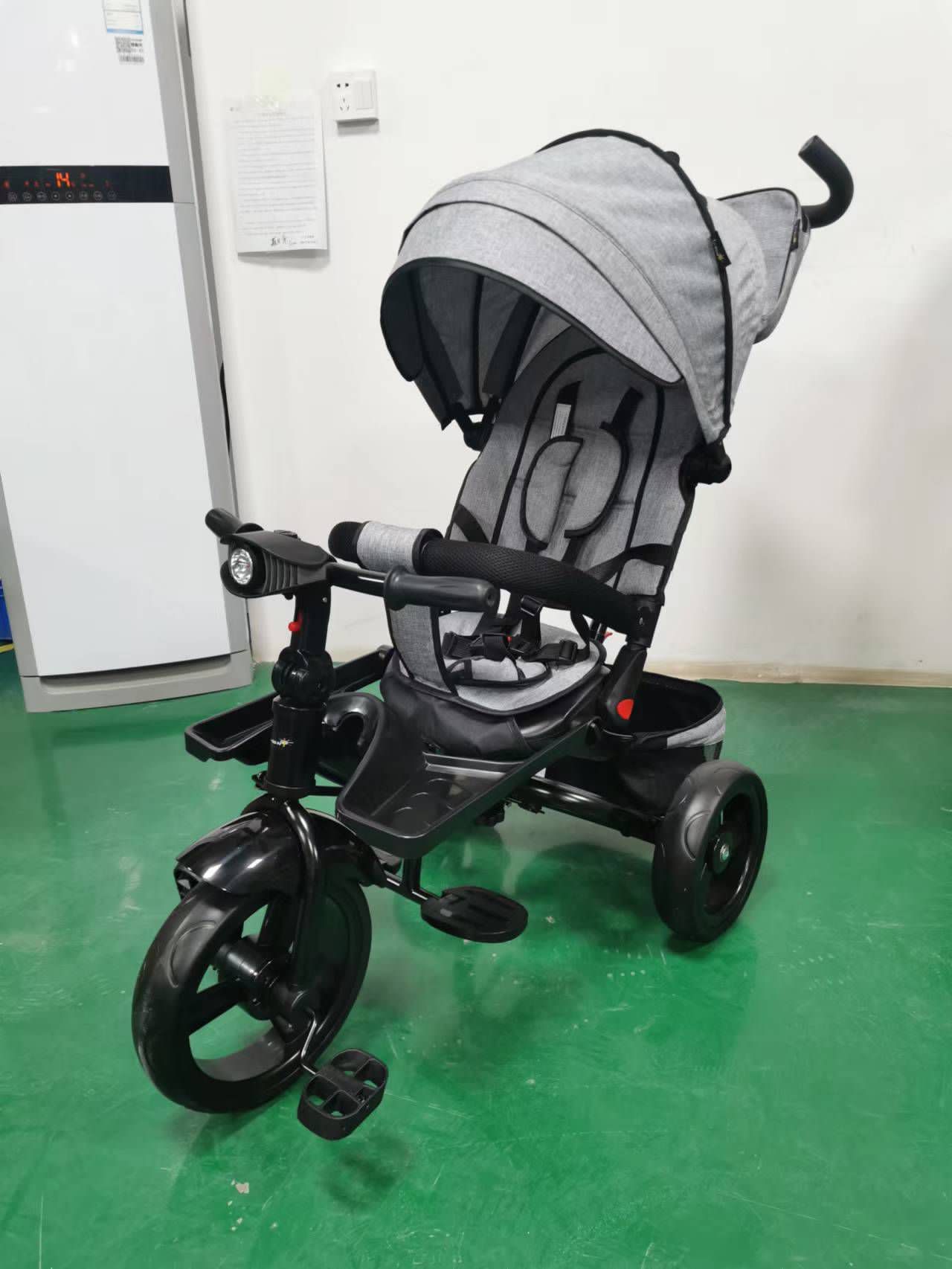 Tricicleta L-Sun SL02, cu pozitie de somn, scaun rotativ si muzica distractiva, culoare GRI