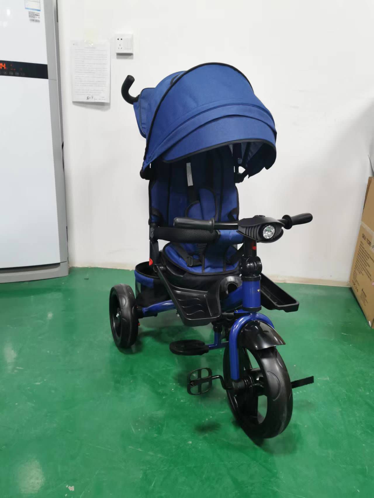 Tricicleta L-Sun SL02, cu pozitie de somn, scaun rotativ si muzica distractiva, culoare albastru