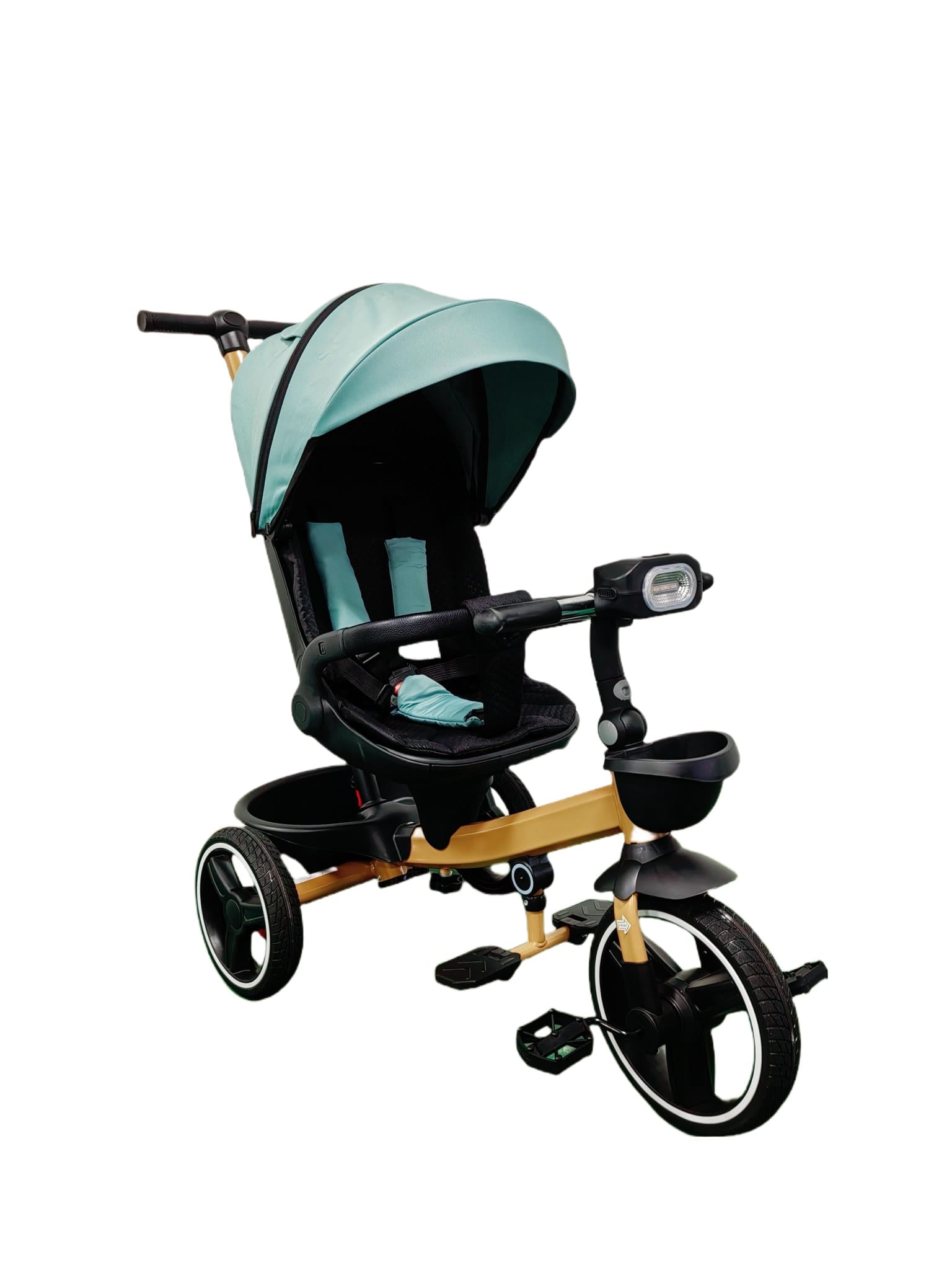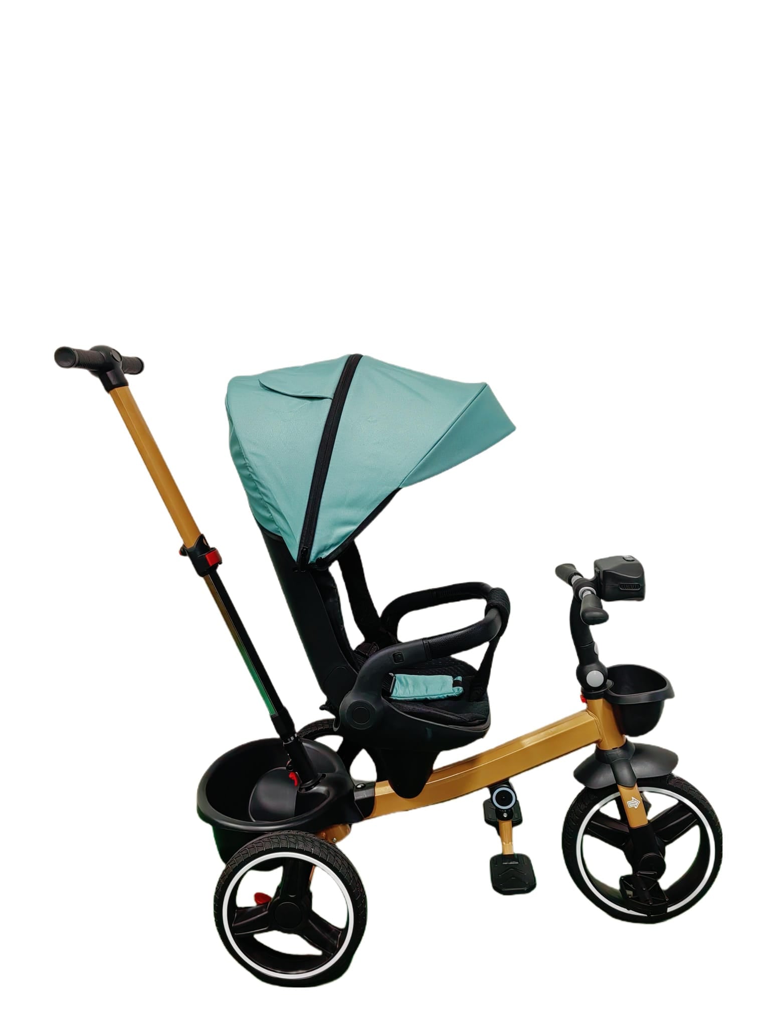 ATENTIE! Tricicleta nu are sistem special de pliere, se mai poate strange prin detasarea scaunelului, parasolar si impingator!
