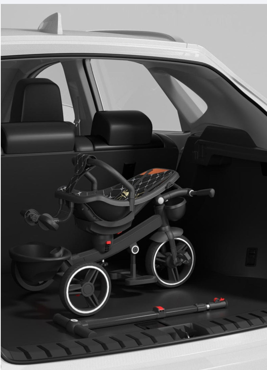 ATENTIE! Tricicleta nu are sistem special de pliere, se mai poate strange prin detasarea scaunelului, parasolar si impingator!