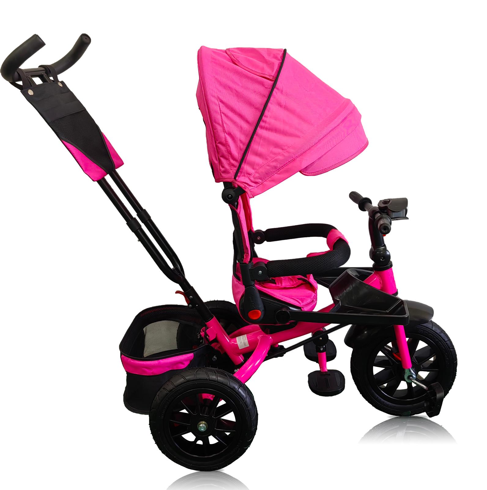 Tricicleta roti cauciuc plin, cu pozitie somn, scaun rotativ, muzica si lumini,culoare ROZ