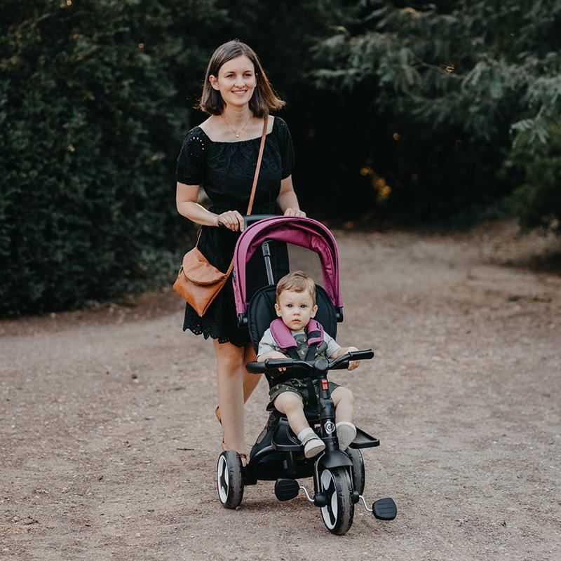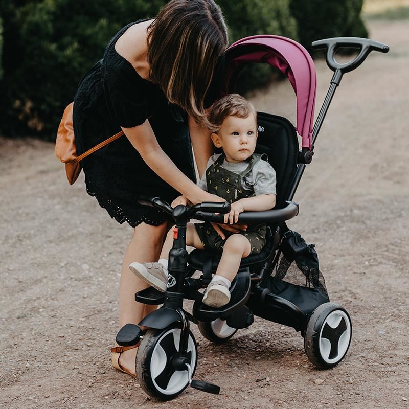 Pentru a spori confortul copilasilor, dar a si prelungi timpul petrecut afara, tricicleta este conceputa pentru a oferi o pozitie comoda de somn atat pentru utilizarea cu fata la sensul de mers, cat si cu spatele intrucat ghidonul se pliaza si confera inca un grad de inclinare spatarului. Dotata cu centura de siguranta in 5 puncte, produsul ofera siguranta necesara in oricare stadiu al utilizarii acestuia.