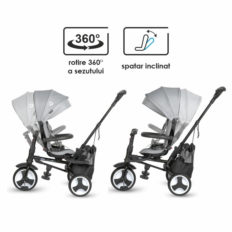 - Elemente detasabile (copertina, inel de protectie, suport de piciare) pentru a rezulta o tricicleta clasica utilizabila de catre copiii mai mari