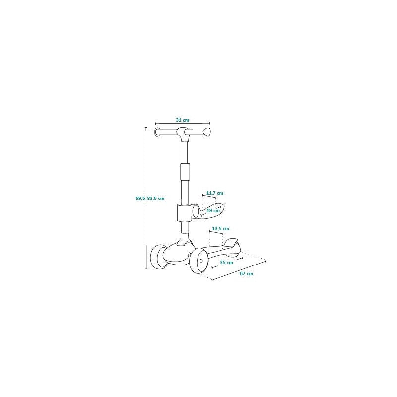 Lionelo Franky combina doua vehicule pentru copii intr-unul singur: o trotineta si o bicicleta de echilibru. Chiar si copiii de doar un an pot sta confortabil si in siguranta pe sezutul detasabil. Inaltimea ghidonului este reglabila infinit pentru a se adapta la inaltimea copilului. Cu sezutul indepartat, trotineta este potrivita pentru copii pana la o greutate de 50 kg.