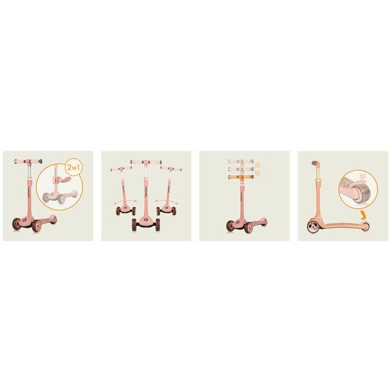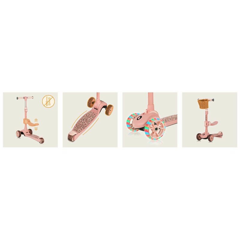 Trotineta, Lionelo, Franky, Multifunctionala, Pliabila, Pana la 50 kg, Bicicleta cu 3 roti si trotineta de echilibru, Ghidon reglabil, Sezut detasabil, Roti cu LED, Conform cu EN71, EN62115, 12 luni+, Roz