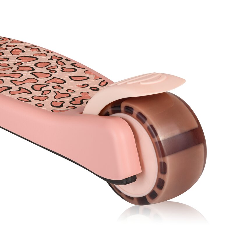 Controlul echilibrului corpului este intuitiv si simplu de invatat pentru copii, permitandu-le sa isi insuseasca rapid echilibrul, prevenind virajele bruste si asigurand o plimbare stabila. Rotile mari imbunatatesc manevrabilitatea si ofera o calitate mai buna a plimbarii. Acestea sunt echipate cu LED-uri colorate activate de miscare, care adauga un plus de distractie in timpul jocului (fara a fi nevoie sa te ingrijorezi de baterii). Cosul montat pe ghidon va tine cele mai importante comori ale micului calator, iar frana profilata, rulmentii fabricati la standardul ABEC-9 si intariturile din fibra de sticla sporesc siguranta. Trotineta poate fi pliata fara a scoate ghidonul - doar apasa un buton si impinge usor. Designul usor al trotinetei o face convenabila pentru transport.