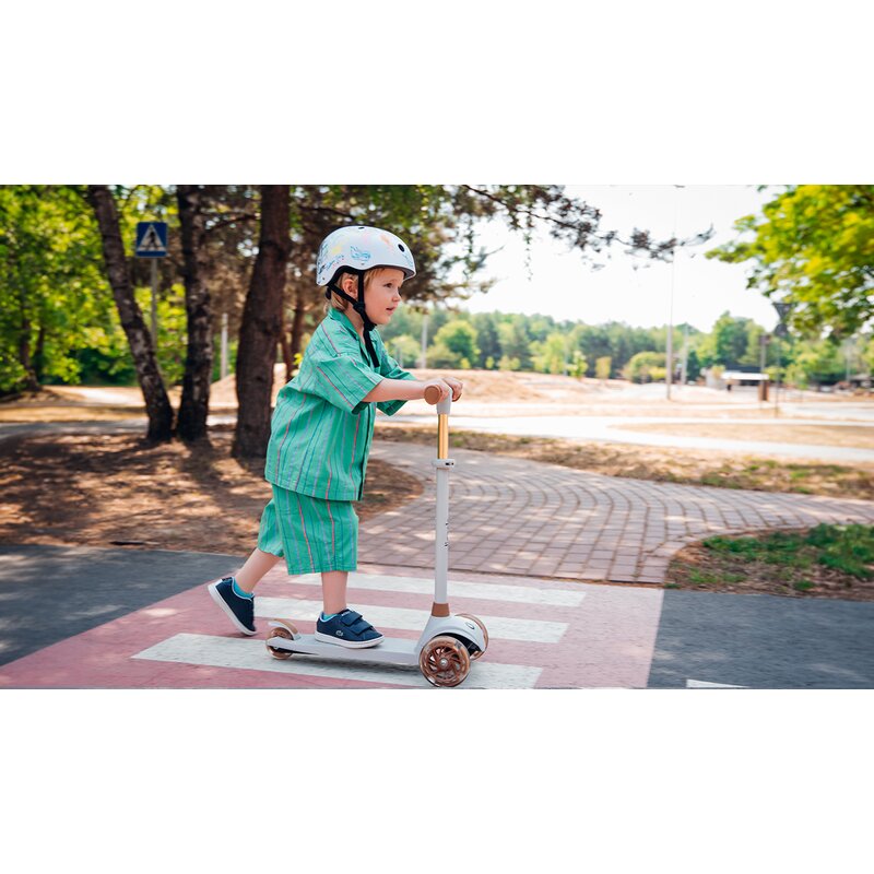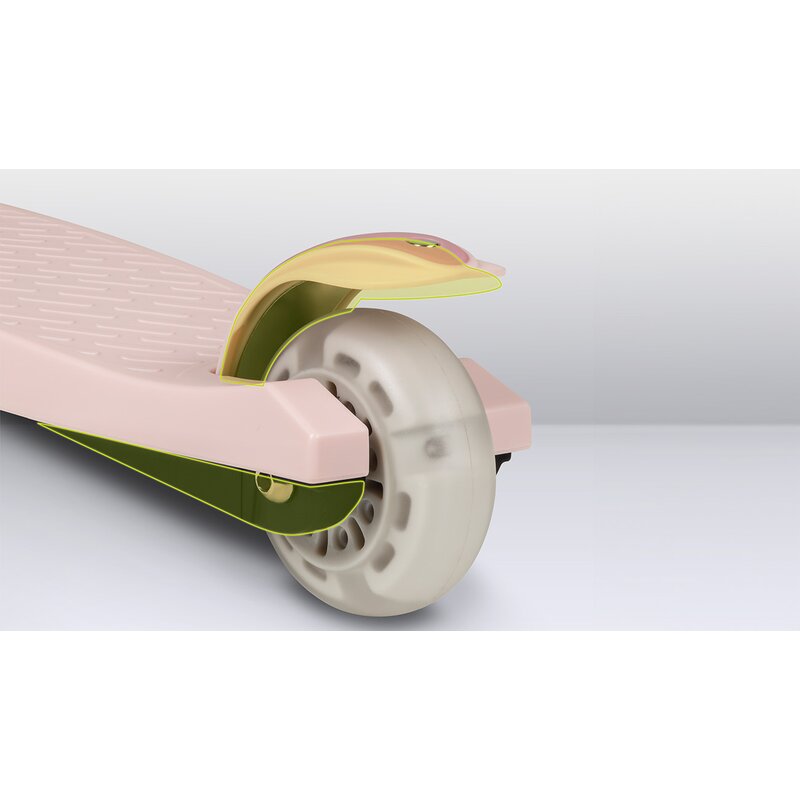 Geometria de franare special adaptata asigura o franare eficienta, in timp ce rulmentii avansati ABEC-7 asigura o calatorie lina si stabila. Sistemul dublu de reglare a inaltimii volanului si limitatorul de directie la 65 de grade sporesc si mai mult siguranta utilizarii. Scuterele indeplinesc standardele stricte de siguranta EN71-1/2/3, ceea ce garanteaza fiabilitatea si calitatea acestora.