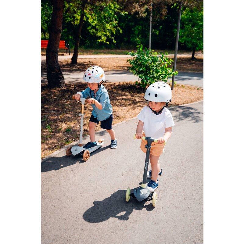 Siguranta copilului dumneavoastra este extrem de importanta pentru noi. De aceea, scuterul de echilibru Lionelo Jessy Grey Green este proiectat avand in vedere cel mai inalt standard de siguranta si confort. Finisajul puntii cu o suprafata antiderapanta si frana integrata pe puntea spate, ranforsata cu un substrat de otel, garanteaza stabilitatea in timpul fiecarei calatorii.
