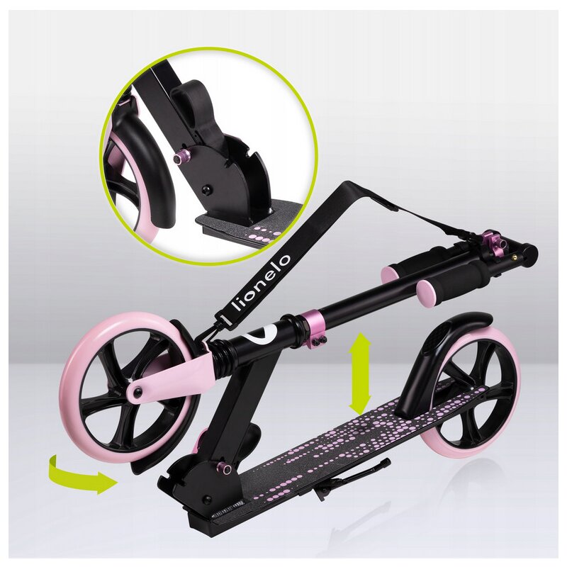 Trotineta, Lionelo, Luca, Pentru copii sau adulti, Ultrapliabila, Pana la 100 Kg, Conform cu standardul european de securitate EN14619, Roz