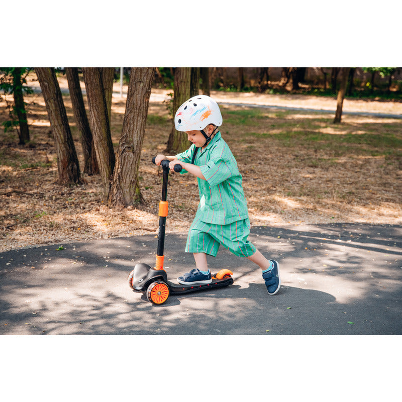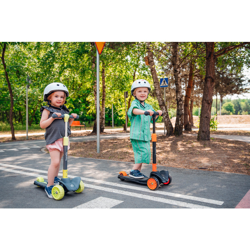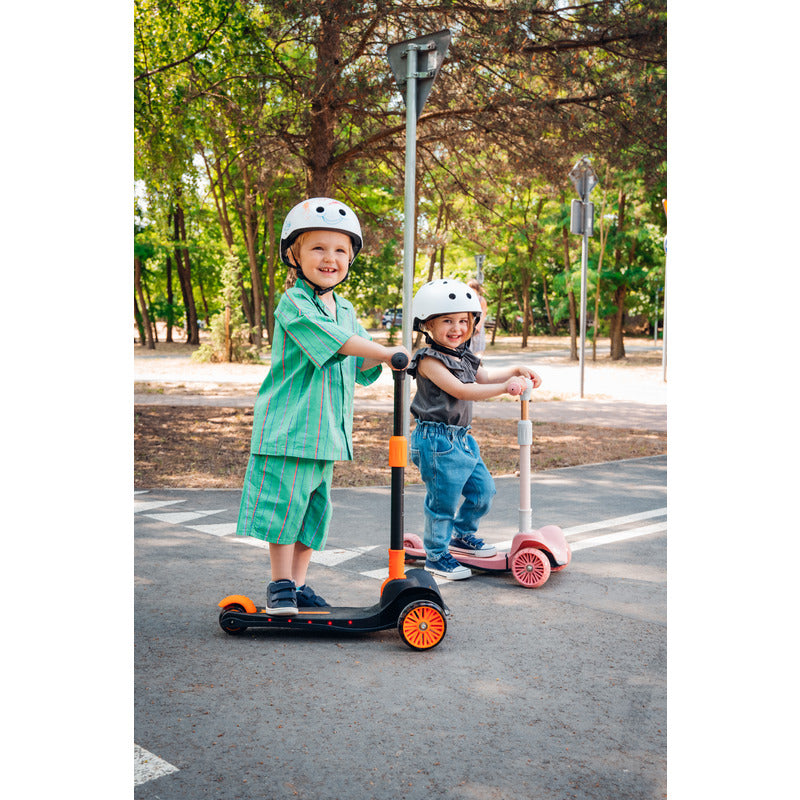 Scuterul nostru Lionelo Timmy Pink Rose atrage atentia prin designul sau unic si culoarea caracteristica. Suntem convinsi ca micutului tau ii va placea de la prima vedere, iar acest lucru se datoreaza, printre altele, si luminilor LED alimentate de miscare, care se regasesc in roti si in platforma (o alimentare pe baza de baterii AA este suficienta pentru aproximativ 50 de ore de utilizare).