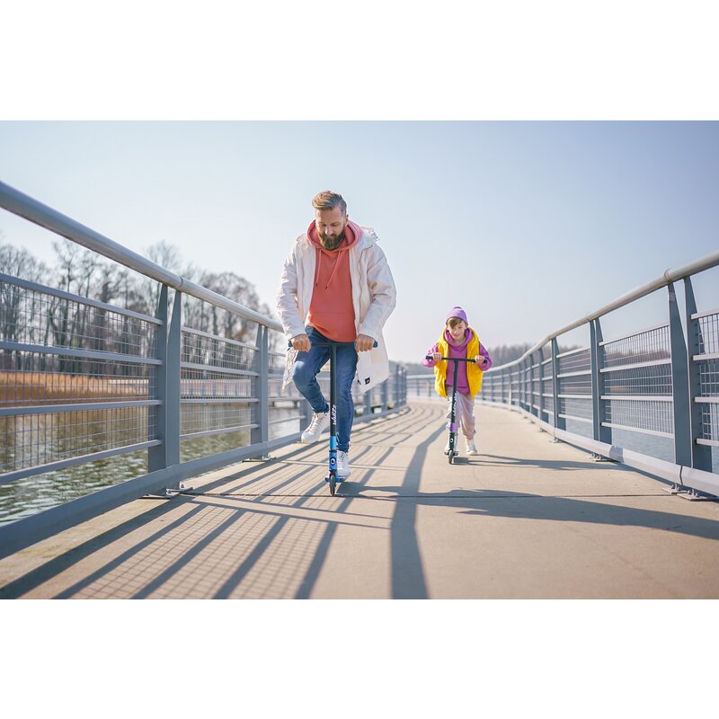 O trotineta freestyle Lionelo Whiz cu sistem de compresie asigura un confort ridicat de condus. Greutatea sa redusa - doar 3,29 kg - permite o plimbare rapida si va ajuta sa sariti. O clema cu patru orificii si o platforma larga (100 mm) garanteaza stabilitatea, ceea ce este important atunci cand circulati pe sine si borduri.