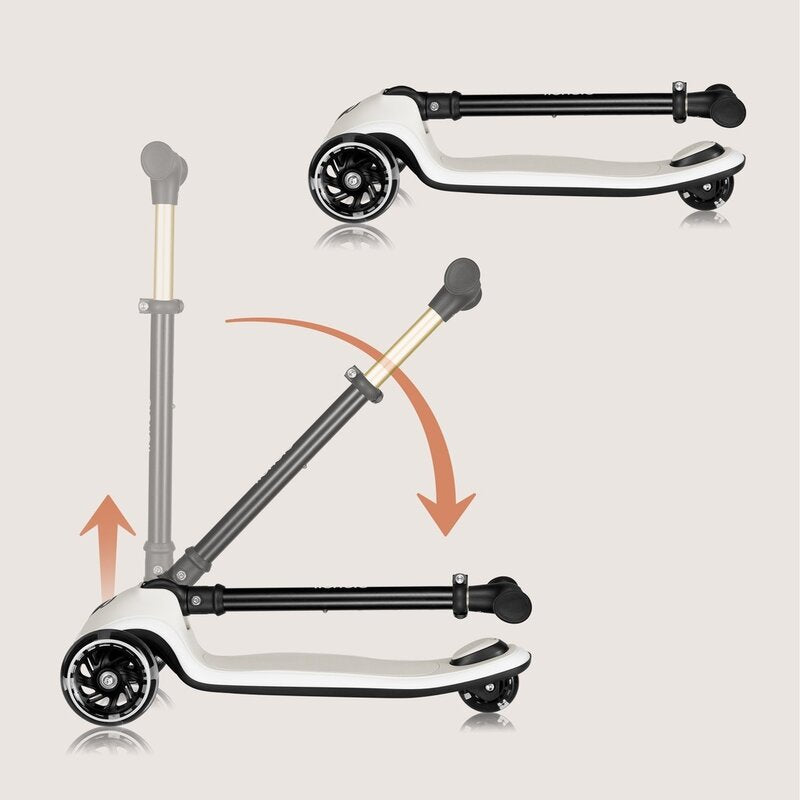 Scari lungi de urcat sau copilul este deja obosit? Nicio problema! Ridica siguranta din partea de jos a ghidonului pentru a-l plia rapid - iti va servi ca maner confortabil! Nu trebuie sa insurubezi, sa conectezi sau sa montezi nimic! Este o idee fantastica pentru un cadou, deoarece dupa despachetare si scoaterea trotinetei din cutie, copilul poate merge imediat la joaca!