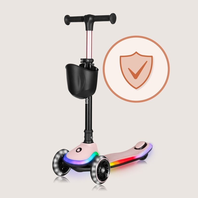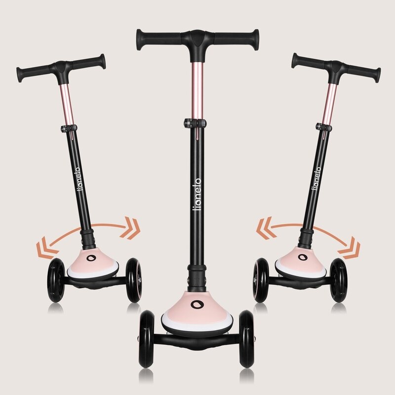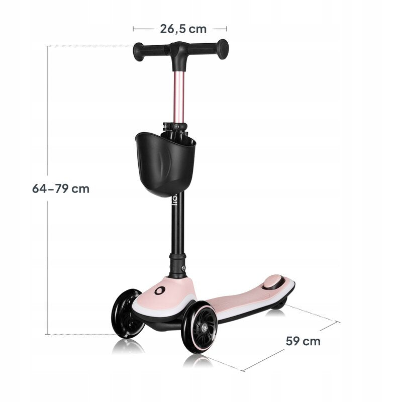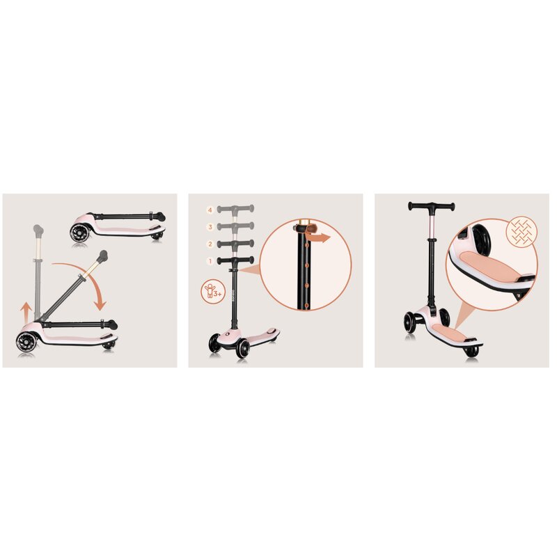 Trotineta pentru copii, Lionelo, Mey, Ultrapliabila, Cu lumini si cosulet, Maner ajustabil pe inaltime, 3 ani+, Pana la 50 Kg, Ultra usor, 2.8 kg, Conform cu standardul EN71-1/2/3, Certificata Intertek, Roz